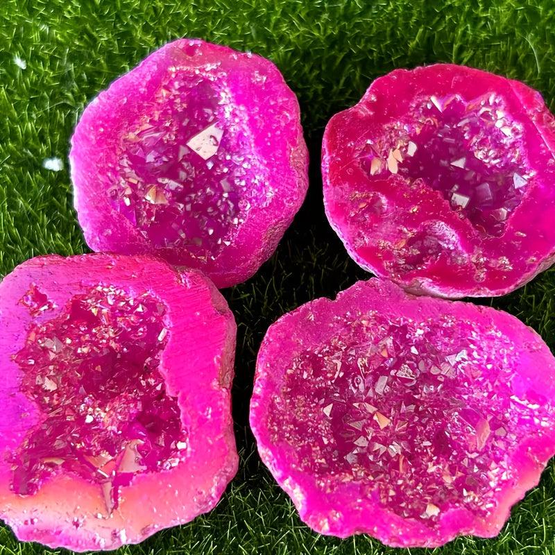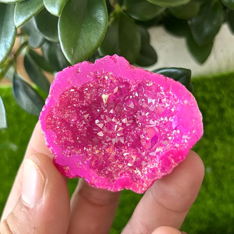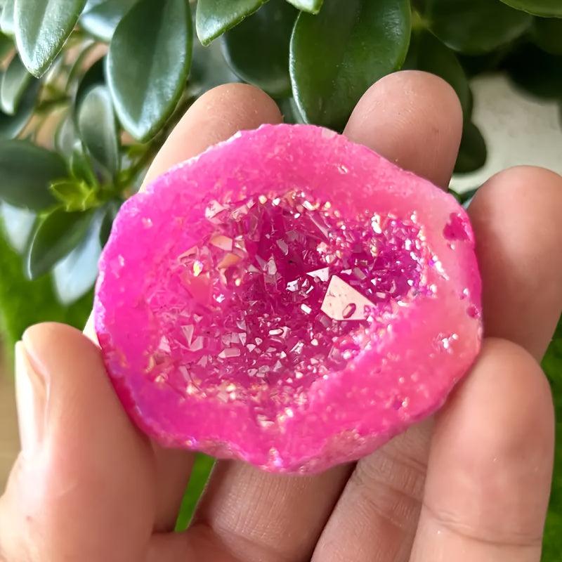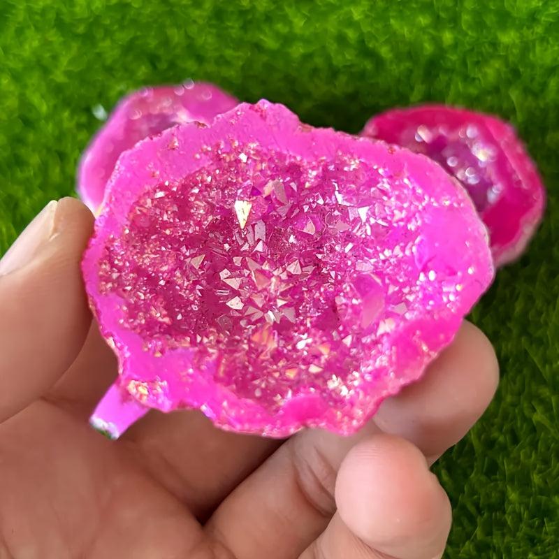 This stunning pink crystal stalagmite is a unique piece of natural stone home decor. It is electroplated to enhance its beauty and would make the perfect gift for friends who appreciate the beauty of natural stone.
