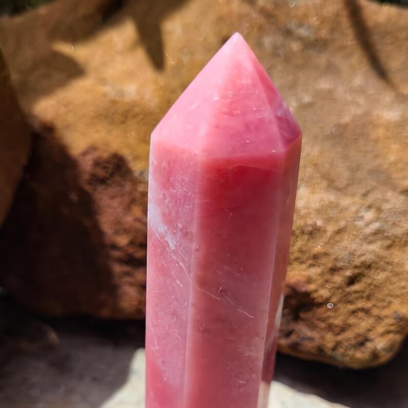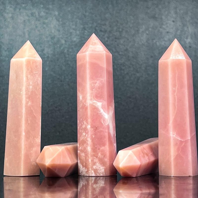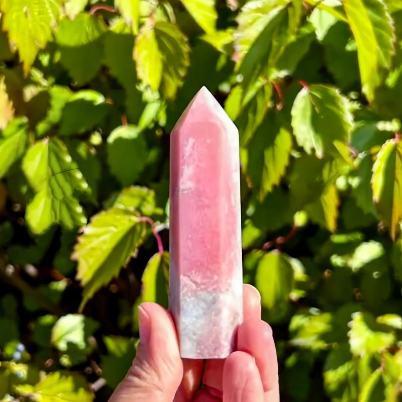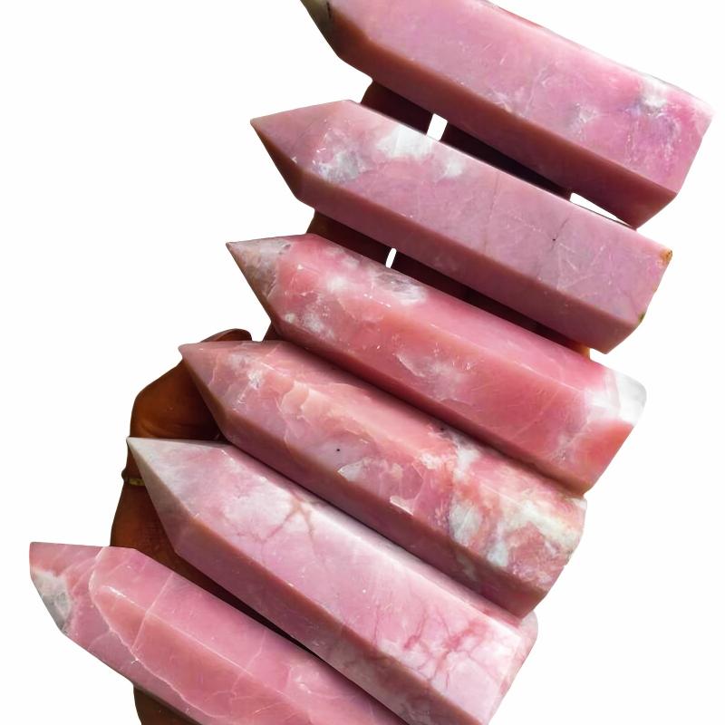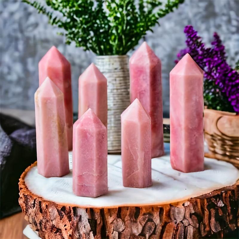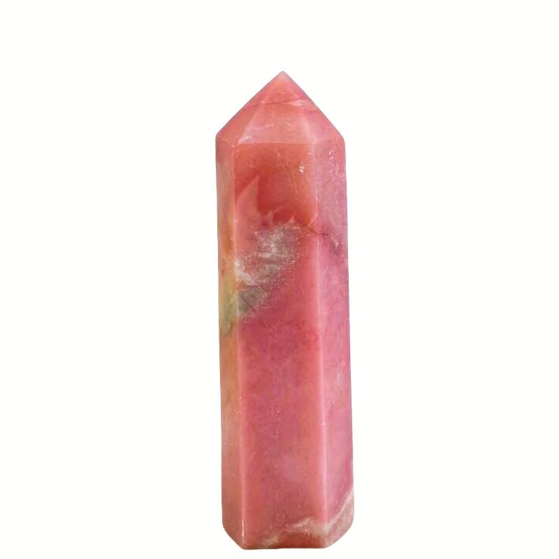 Elevate your space with this stunning Pink Opal Hexagonal Prism Tower. Its high-end rock crystal decoration with sparkling crystals adds a touch of bohemian style to your Halloween decor.