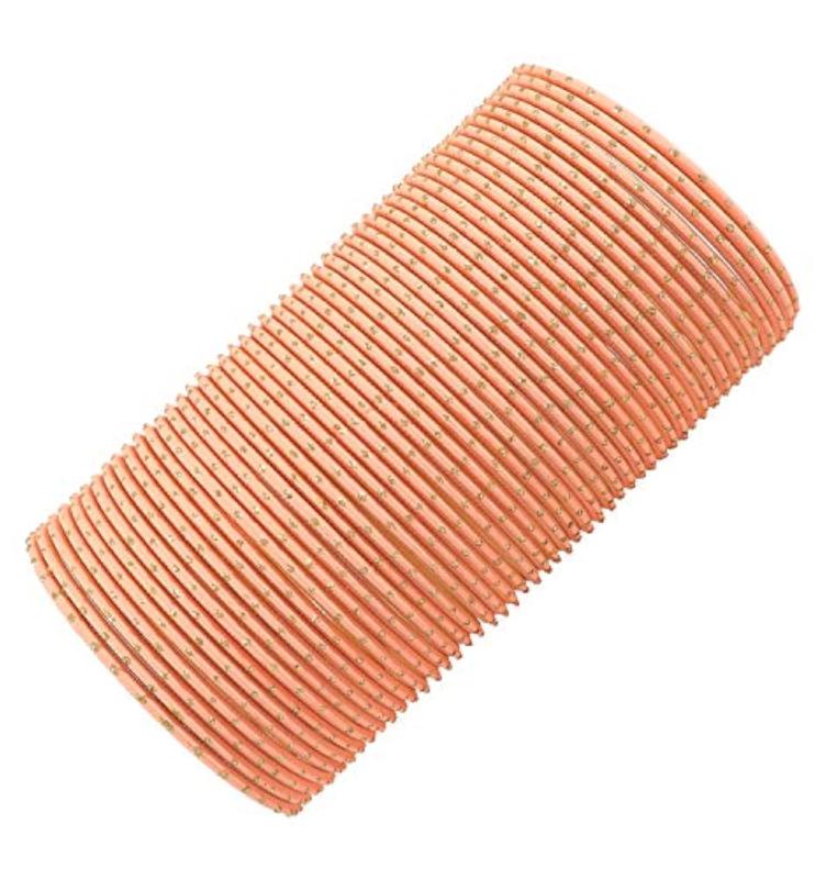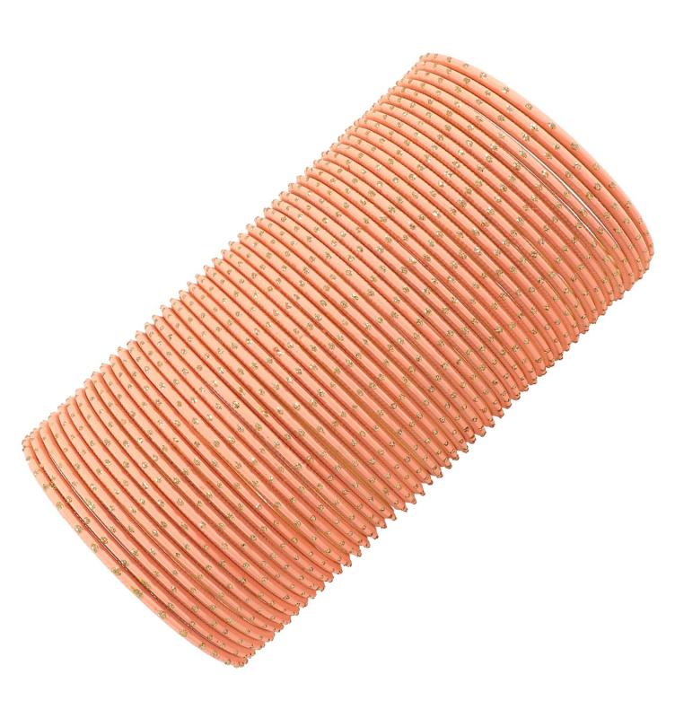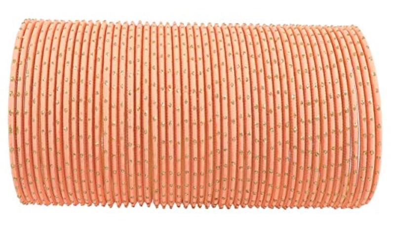 Glossy finished bangle set made of non-precious base metal with polka dots design. Ideal for women and girls. Size: 2.4 inches.