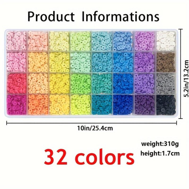 This kit includes 3000/4200/4800 flat round polymer clay beads in 28 vibrant colors. Perfect for making jewelry.