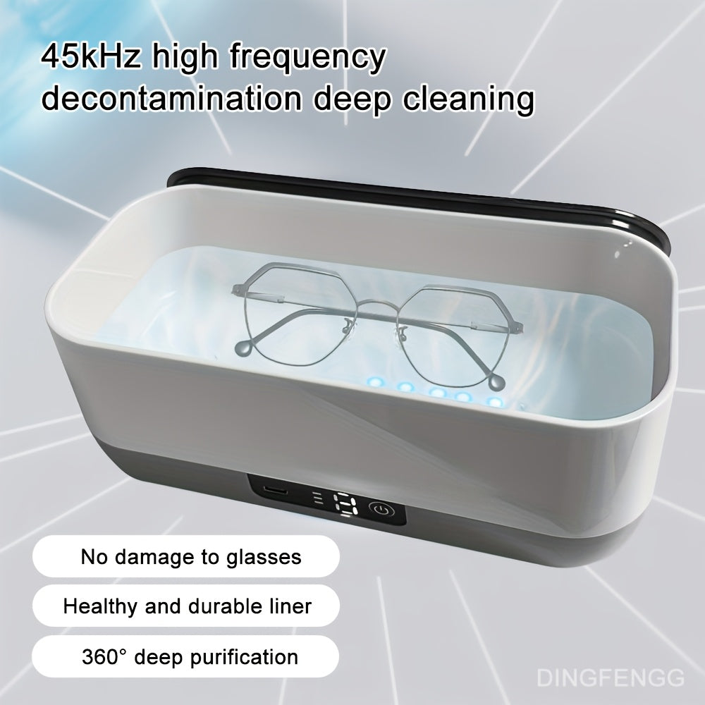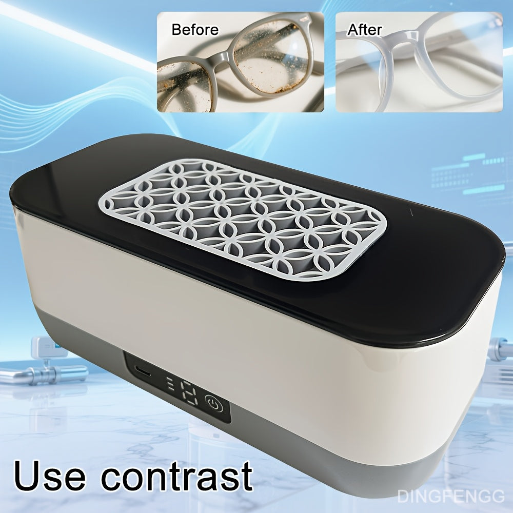 This portable jewelry cleaner uses high frequency vibration to effectively clean glasses, braces, mouthguards, watches, and necklaces.