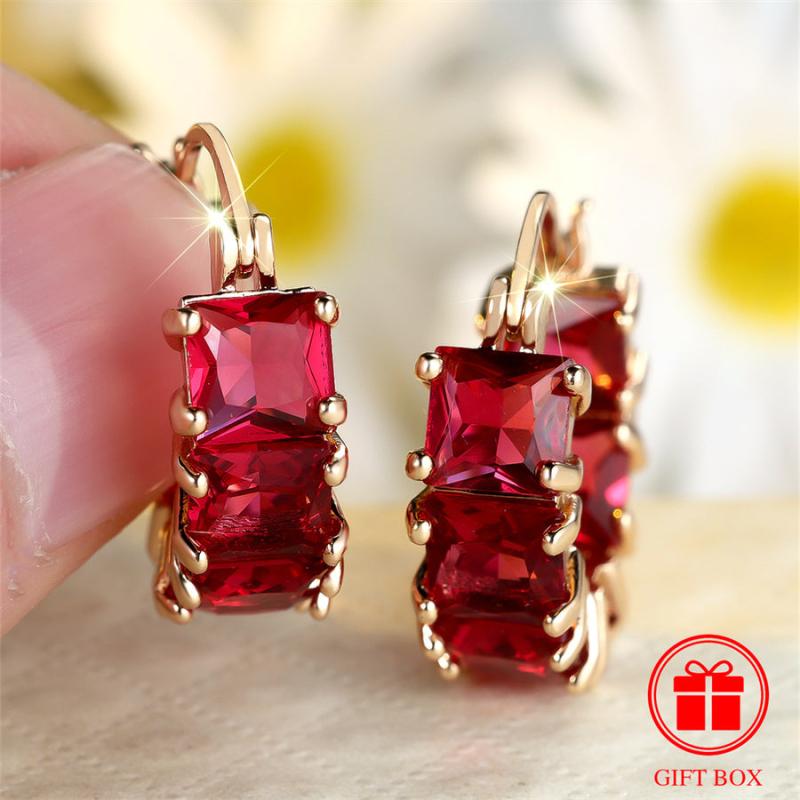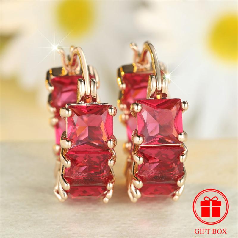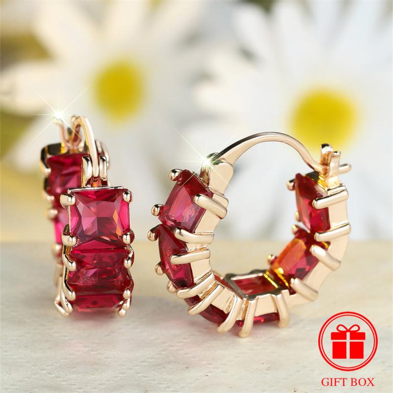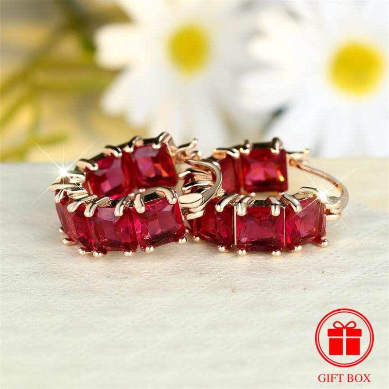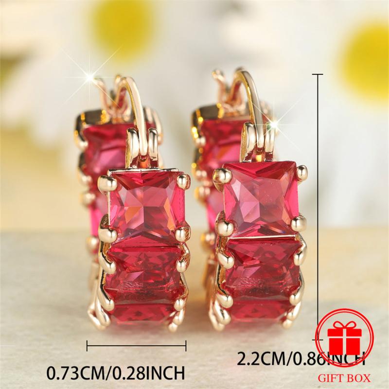 Add elegance to your outfit with these stunning hoop earrings. Perfect for Ramadan festive party or daily wear, these durable earrings feature rose red synthetic zirconia in a princess square cut design.