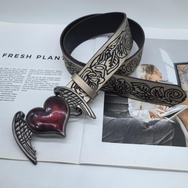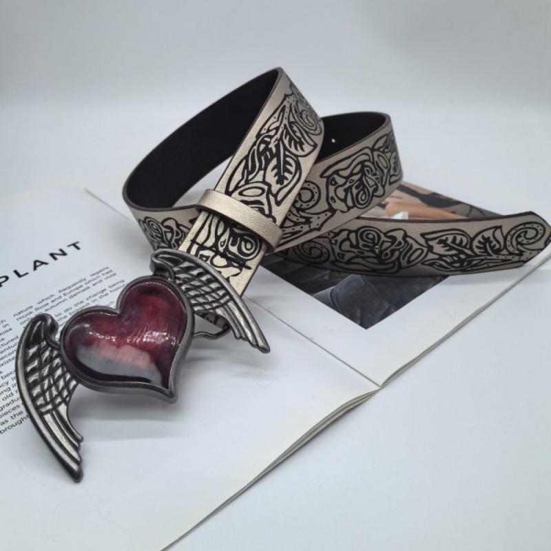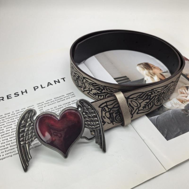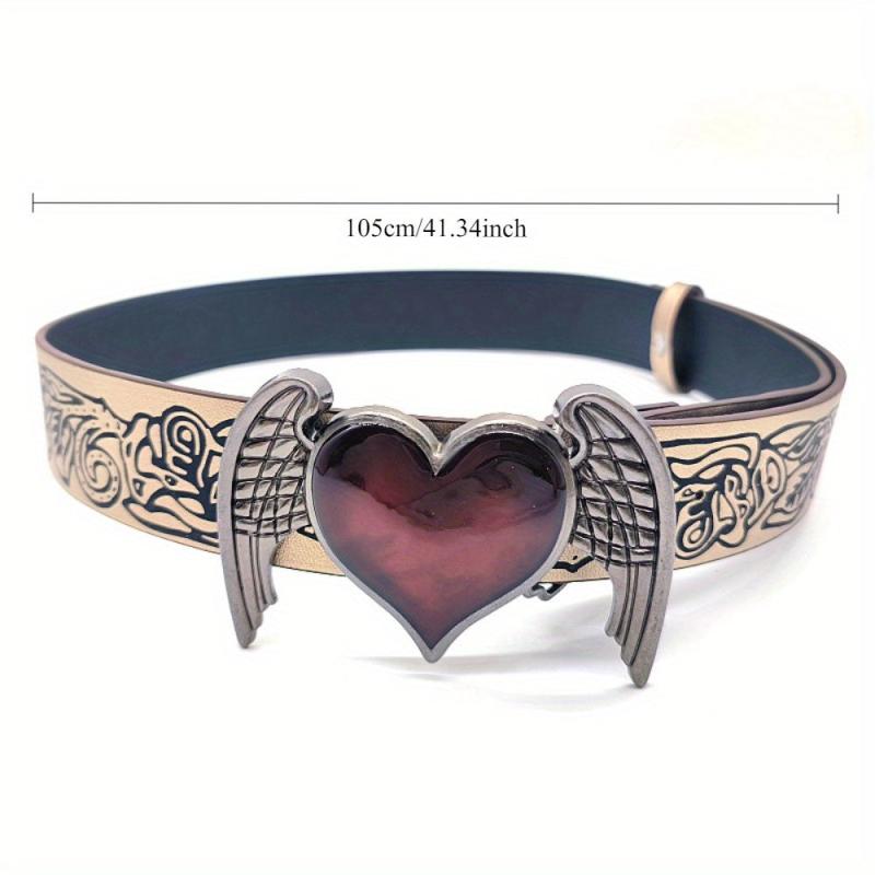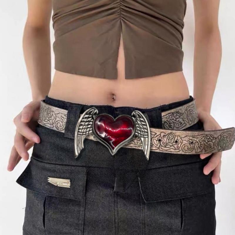 Add a touch of retro punk style with this personalized embossed belt featuring heart and wing design. Suitable for both men and women, this Y2K spicy girl gothic belt is a statement accessory.