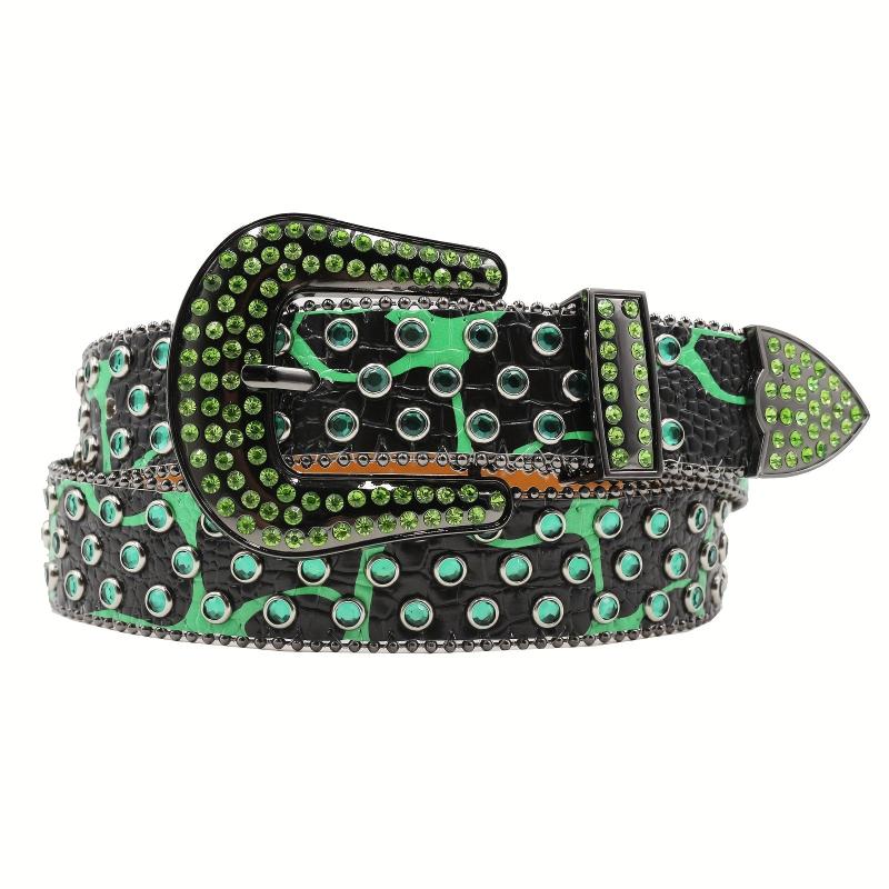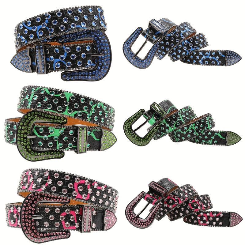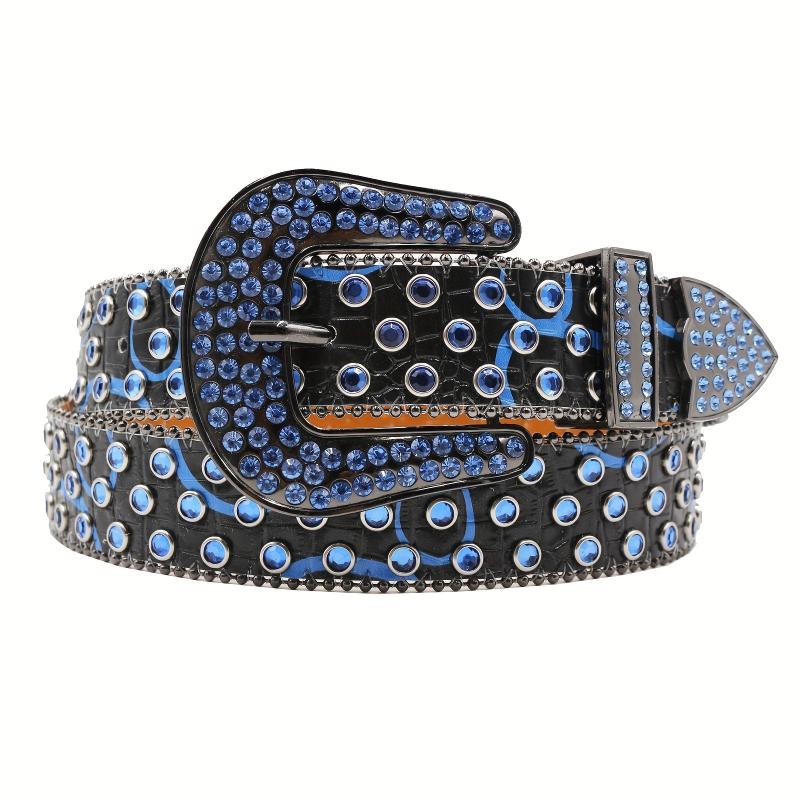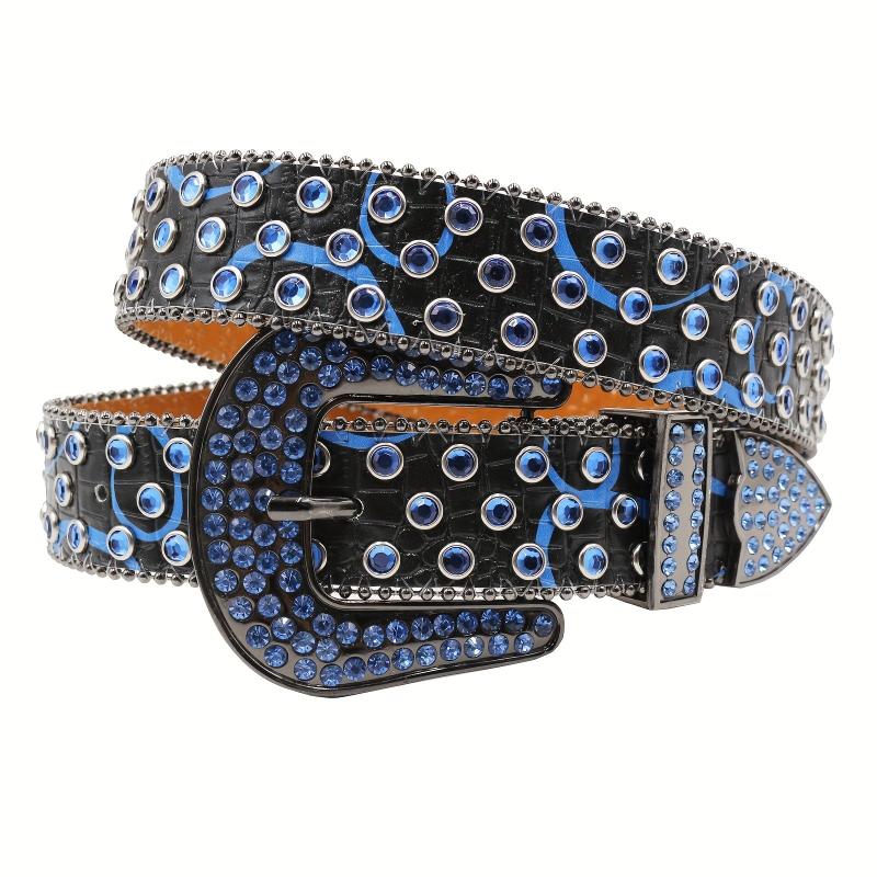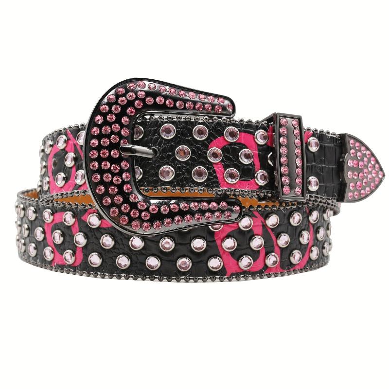 Add a touch of punk Y2K style to your outfit with these rhinestone belts featuring faux leather panels and sparkling embellishments. Perfect for men and women.