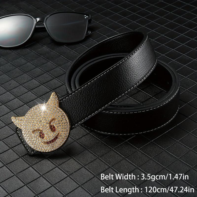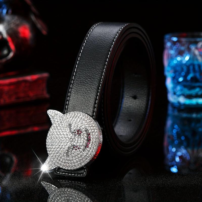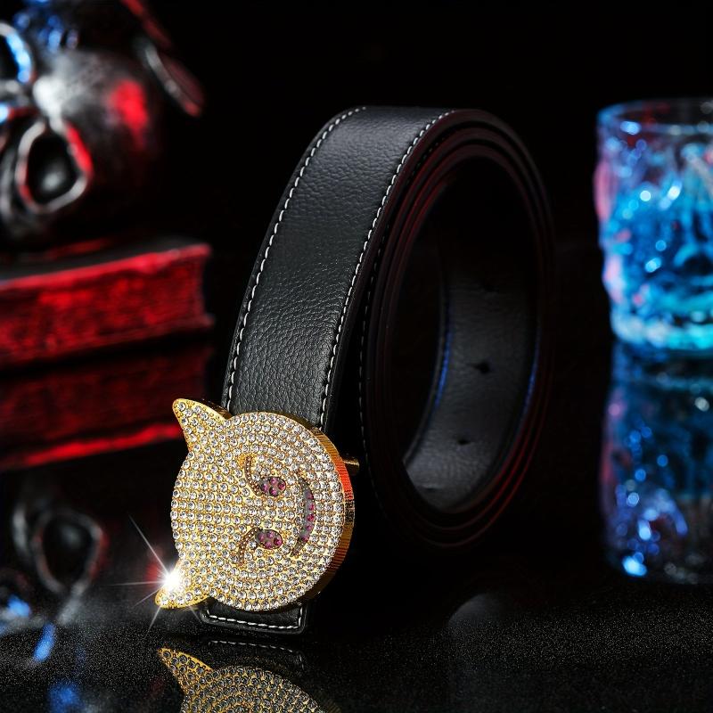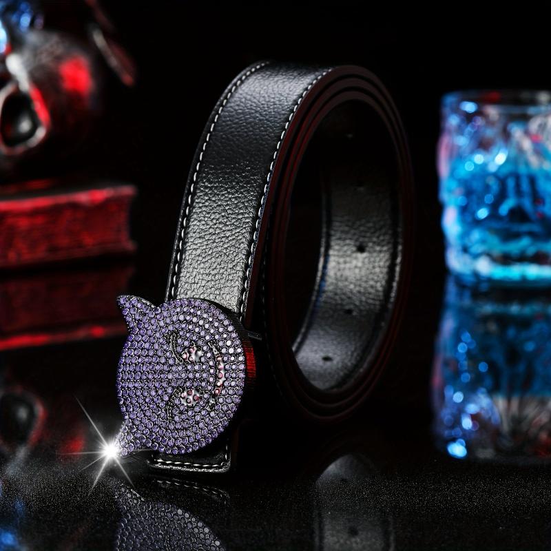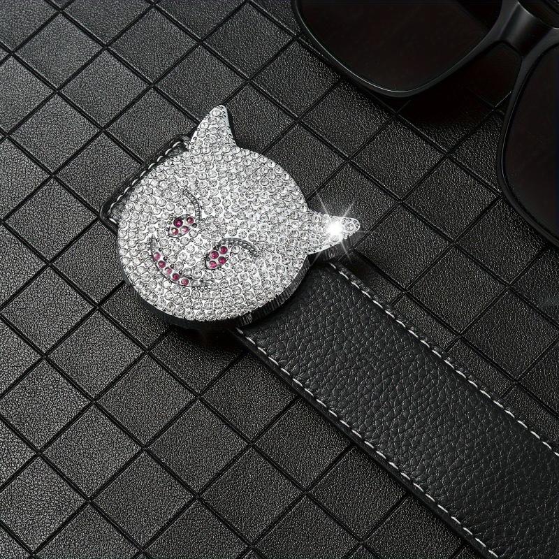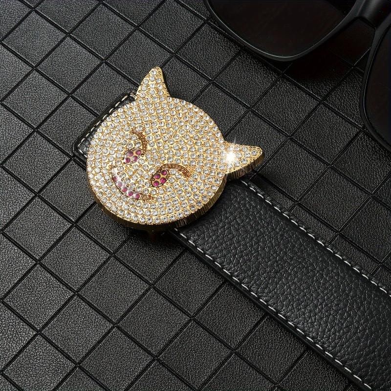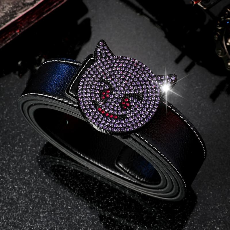 This European and American style belt buckle features a purple cat head design with water drill accents. It's perfect for daily wear, street style, hip hop, and punk looks.