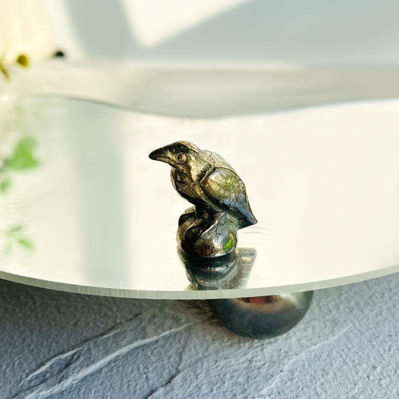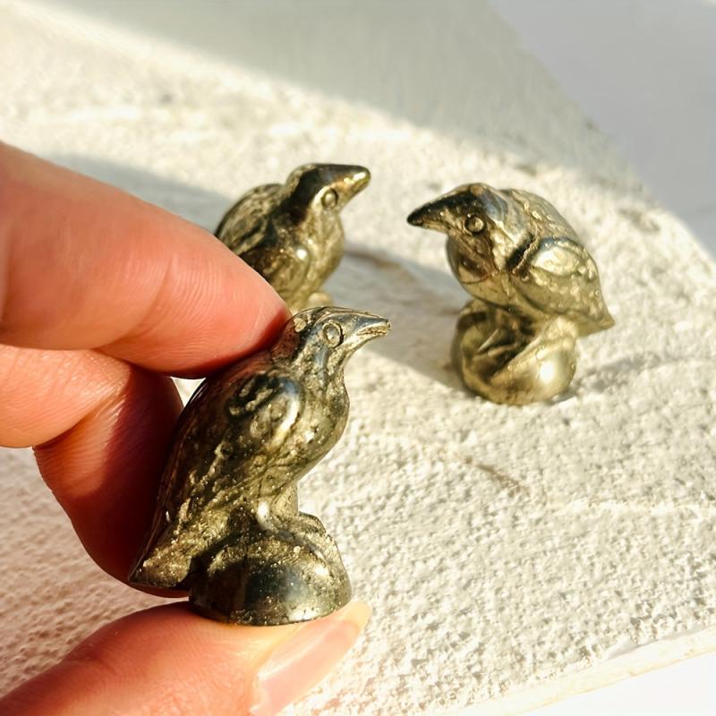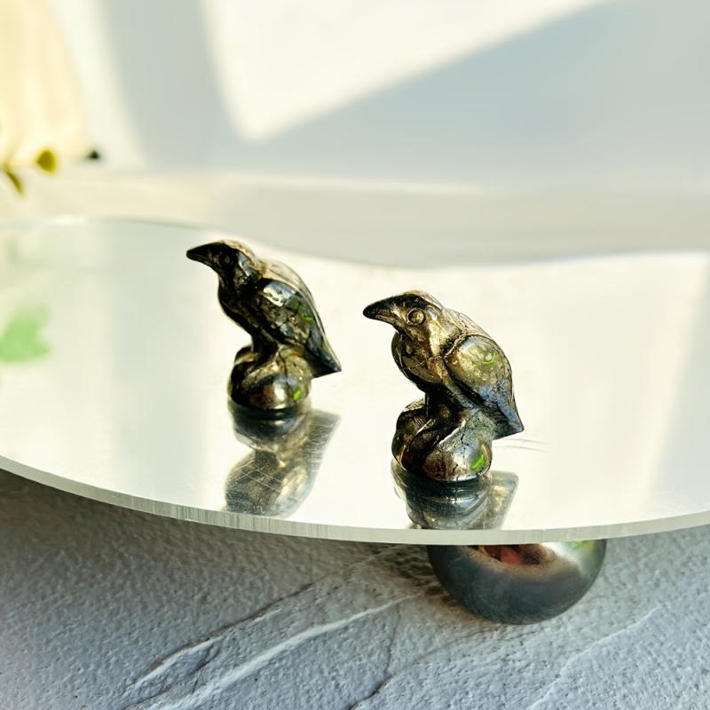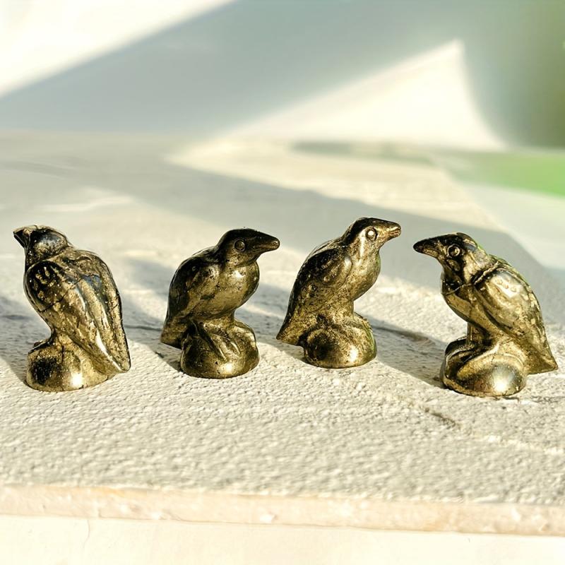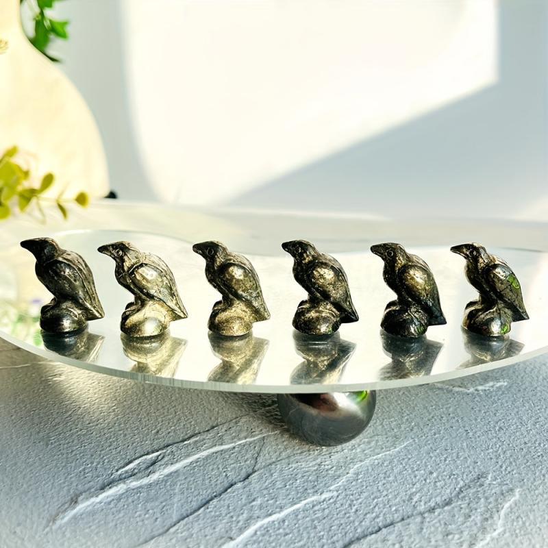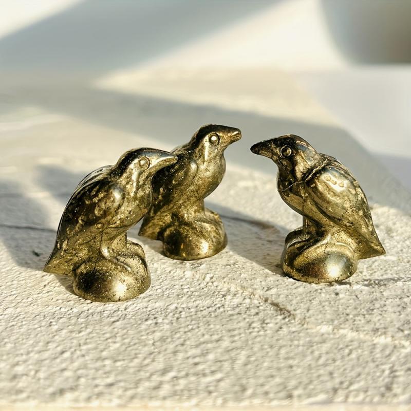 Elevate your space with this stylish Pyrite Crow statue that doubles as a crystal bird art piece. Ideal for accessorizing or enhancing your interior decor.