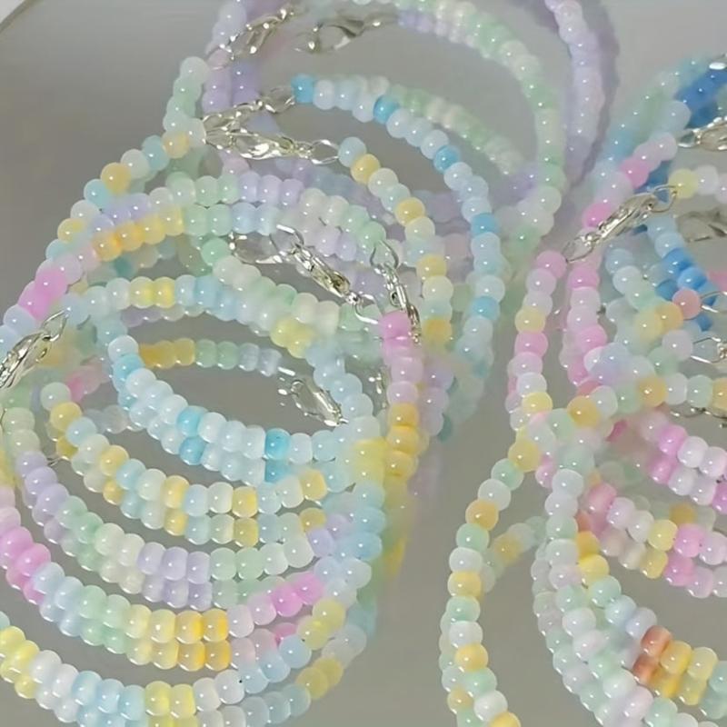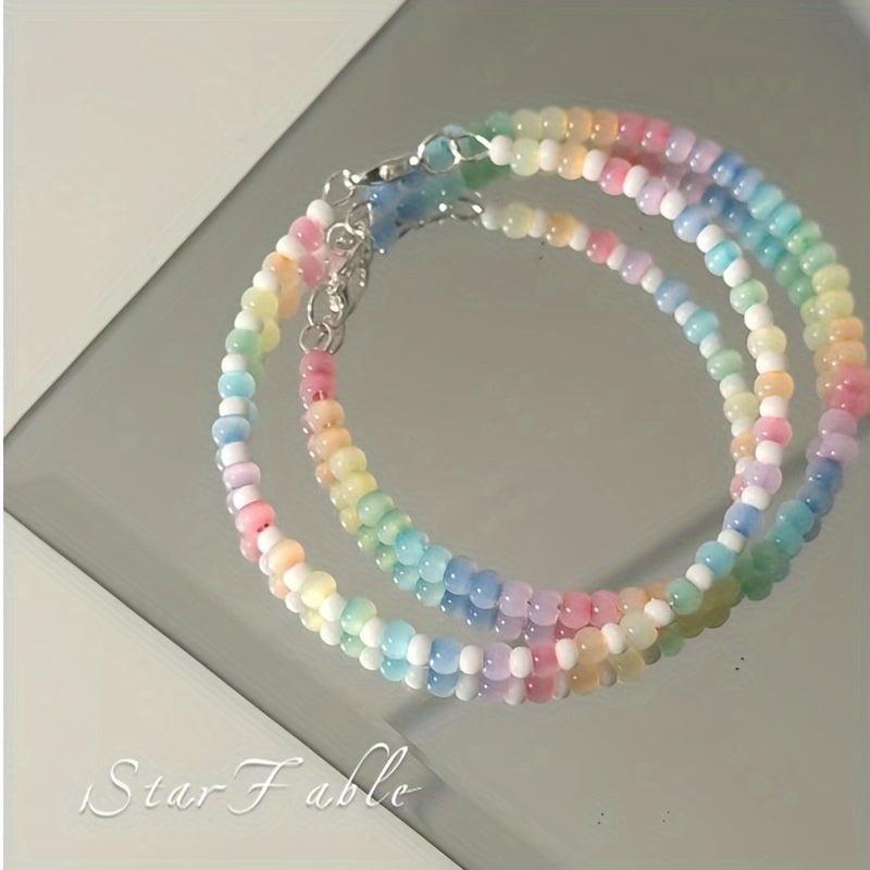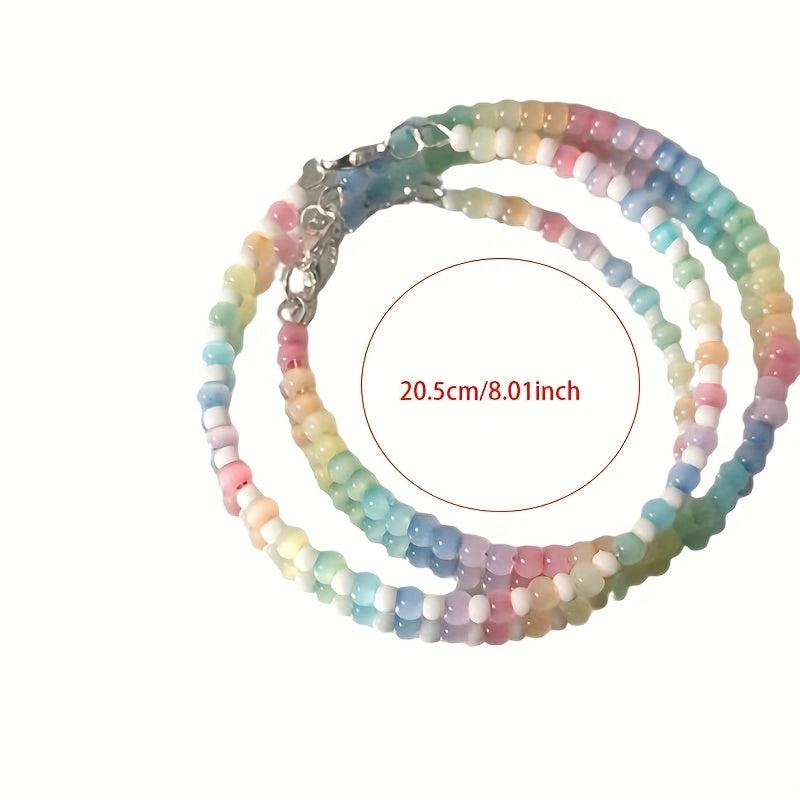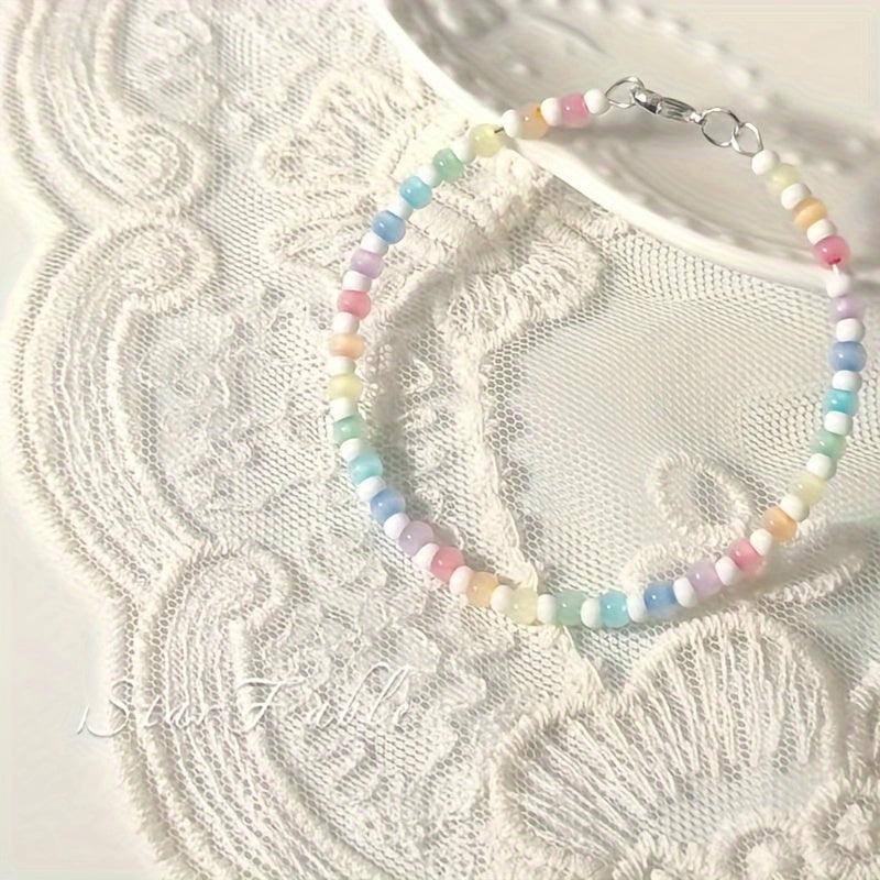 This colorful rainbow beaded bracelet is a versatile accessory for women. It has no plating or setting, making it a perfect choice for all seasons.