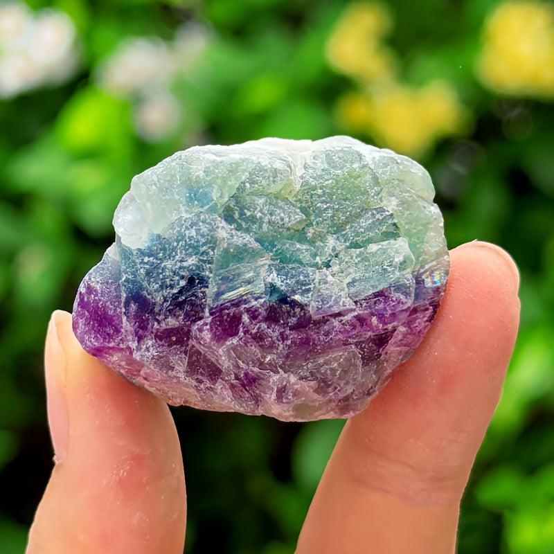 Add a touch of magic to your collection with this natural rainbow fluorite rough stone. This bohemian style multicolor crystal features an iridescent rainbow sheen.