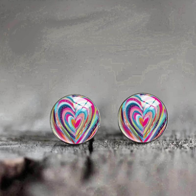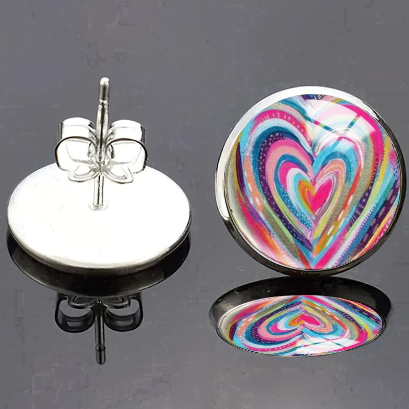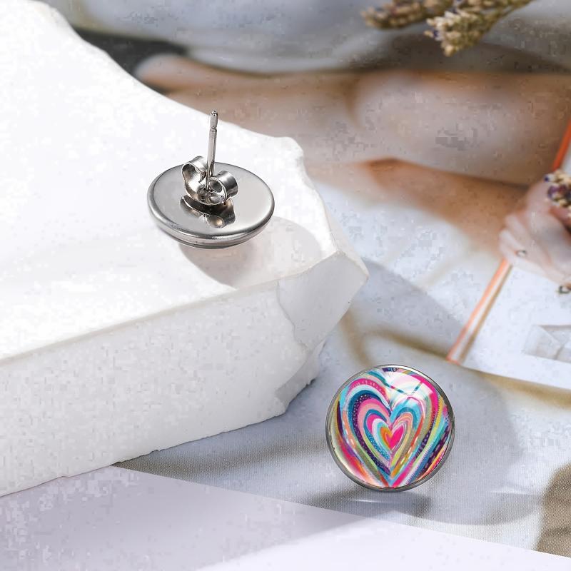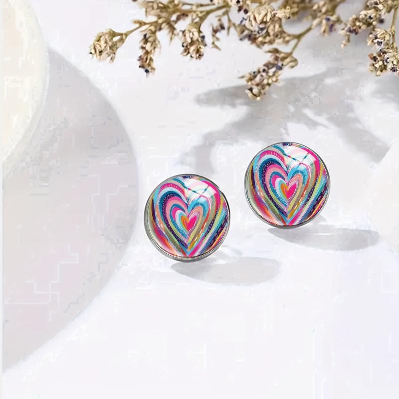 These playful rainbow heart earrings feature an iridescent glossy finish that adds a pop of color to your outfit. Made from stainless steel, these earrings are perfect for casual attire or parties. The rainbow design is a fun and unique way to show off your style.