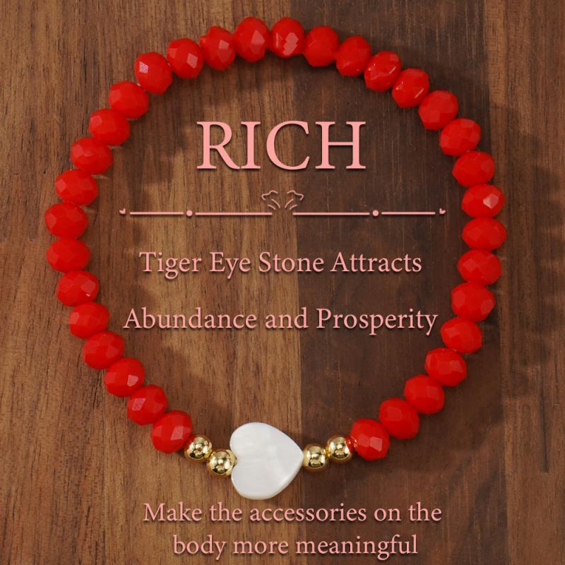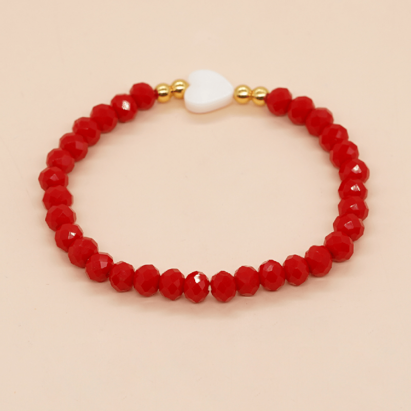Enhance your style with this red artificial crystal shell heart bead bracelet, a meaningful body accessory gift suitable for both men and women.
