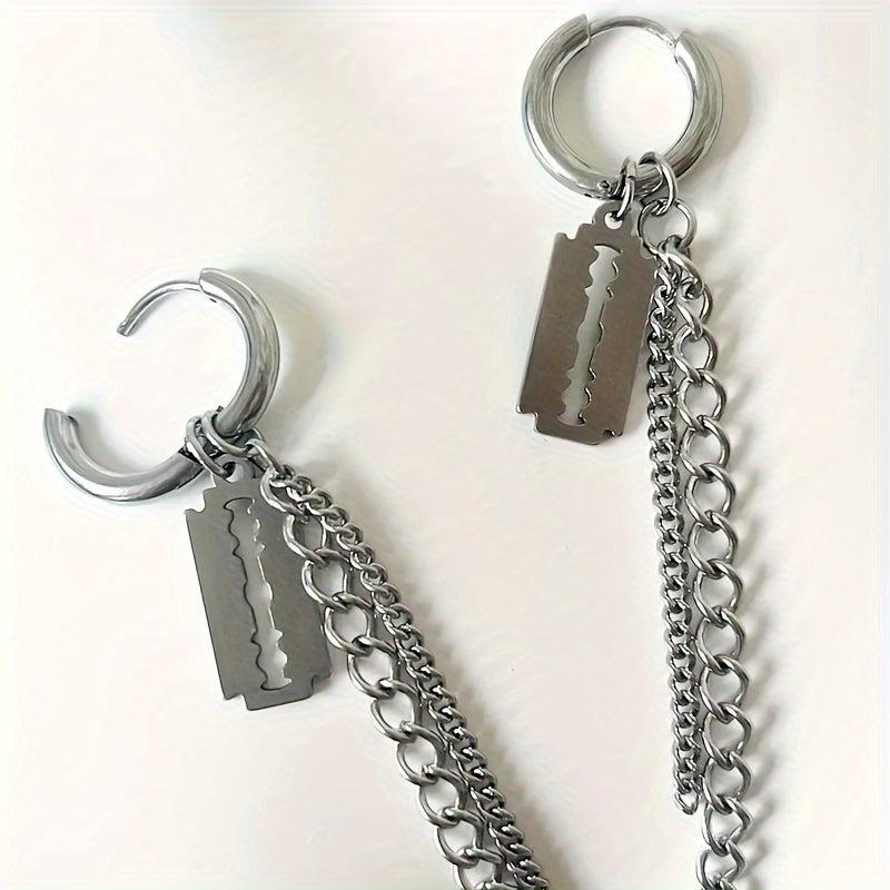 Make a bold statement with these retro blade earrings. Featuring a punk hip-hop golden ear cuff and a dark style, these earrings are perfect for men who want to stand out.