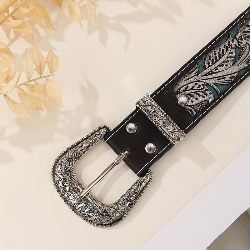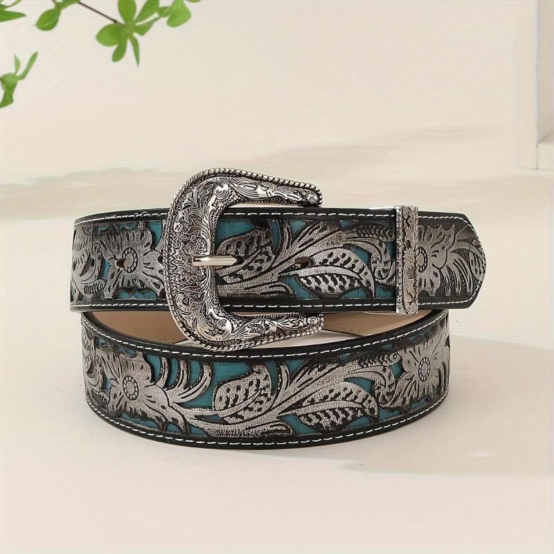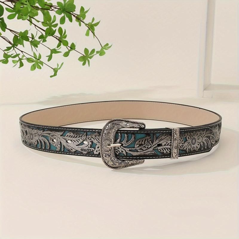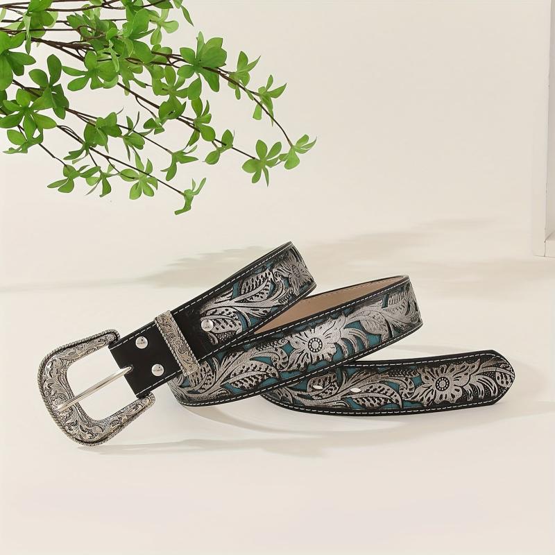 Add a touch of vintage charm to your outfits with this retro floral engraved two tone belt. Perfect for jeans, casual pants, dresses, and bohemian style jackets.