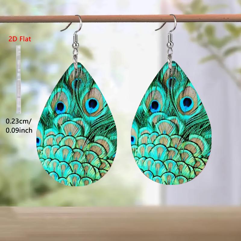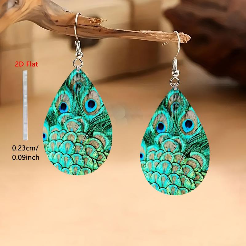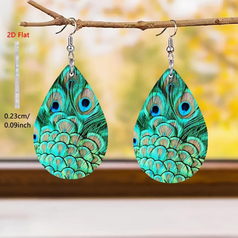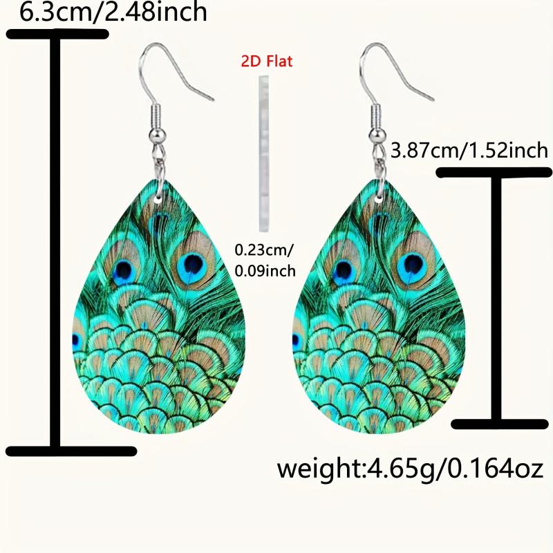 Vintage Bohemian style earrings featuring peacock feather design, made of 316 stainless steel and acrylic materials. Versatile and suitable for daily wear by both men and women.