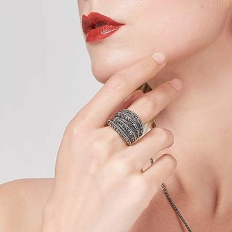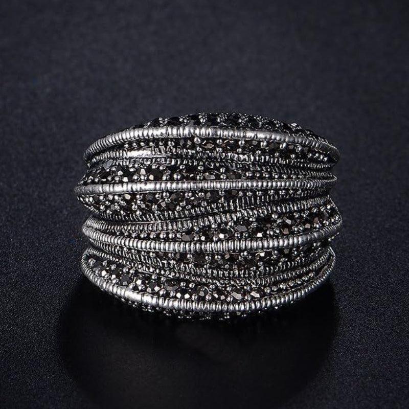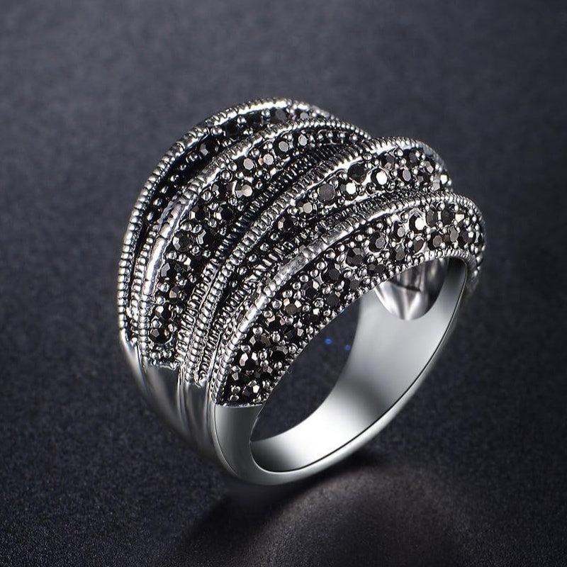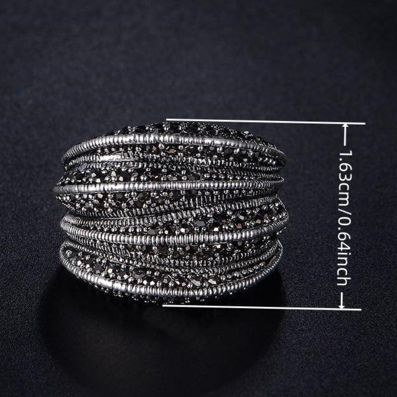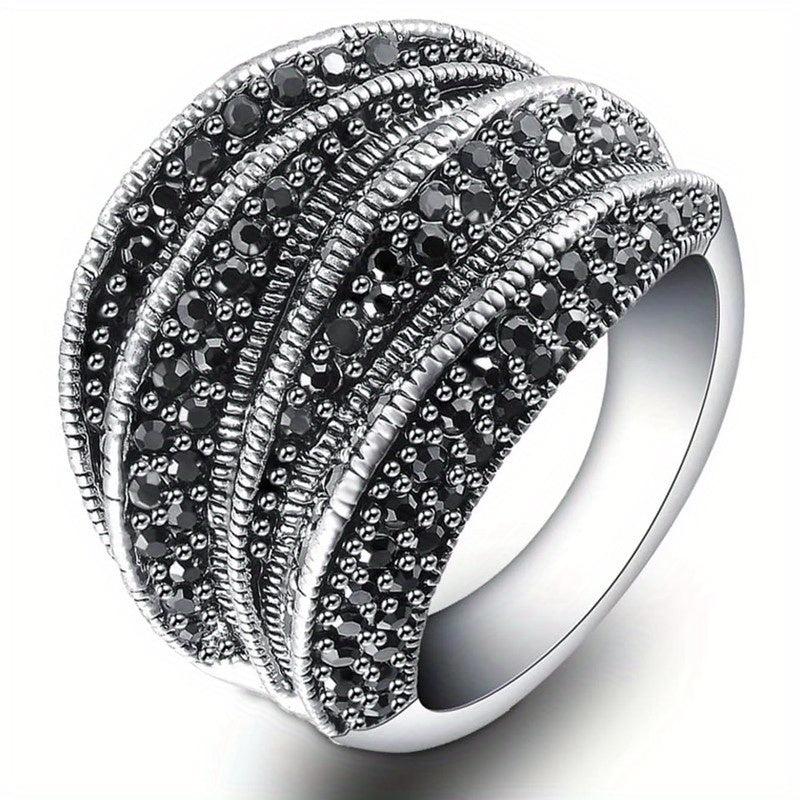 Stylish retro punk ring featuring synthetic zirconia stones on a copper base with K golden plating. Perfect for holiday parties and daily wear.