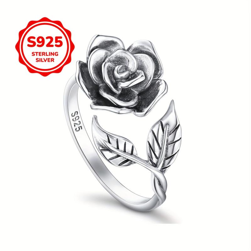 This S925 silver ring features a retro rose flower design, making it a charming accessory for daily wear. It is a beautiful piece that can be an ideal gift for mothers or loved ones. The ring is suitable for those with low allergies due to its silver composition.