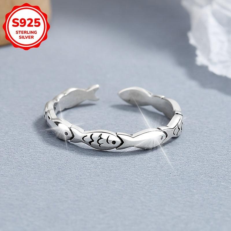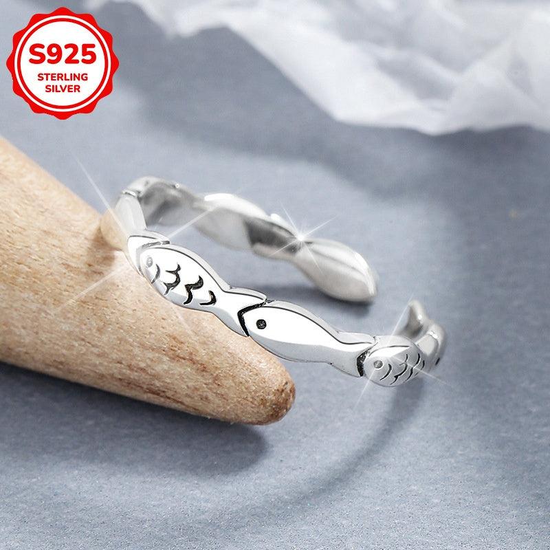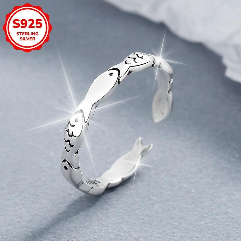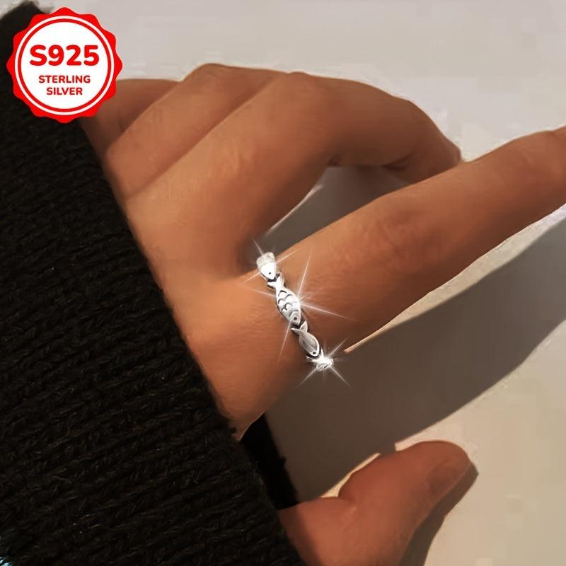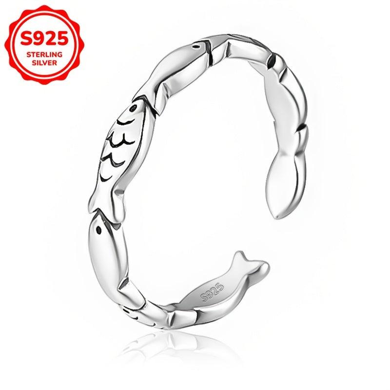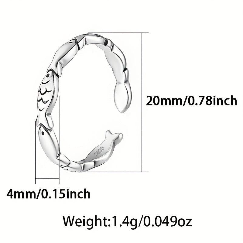 Stay fashionable all year round with this unique silver ring featuring a small fish design. Made of 925 silver, this lightweight ring is perfect for daily wear and vacation.