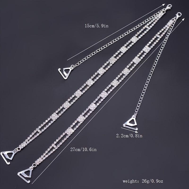 Add some sparkle to your outfit with these rhinestone bra shoulder straps. Perfect for weddings, holidays, or special occasions, these golden plated chains are sure to make a statement.
