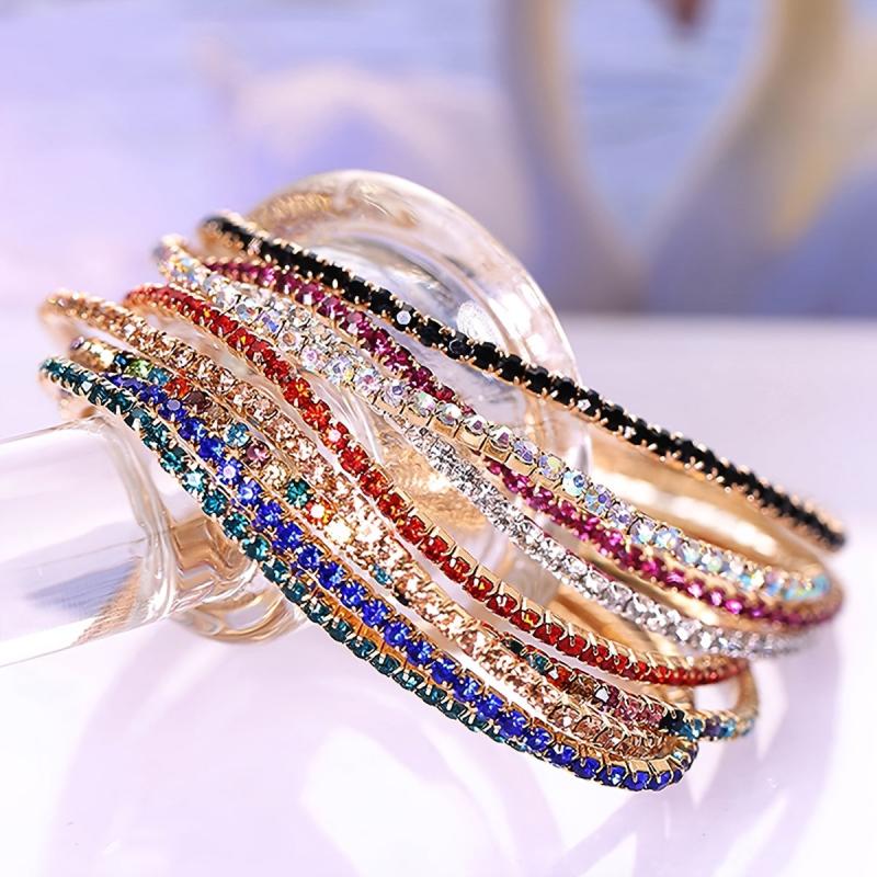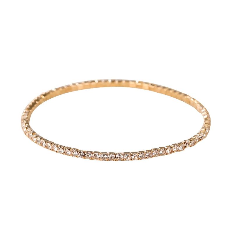 Rhinestone Tennis Wristlet 14K Golden Plated Stretchable Accessory for Women