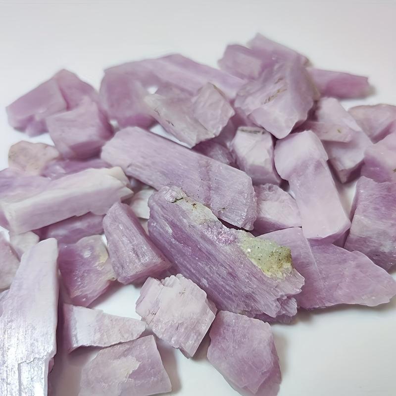 Explore the natural beauty of rough pink Kunzite stones for your DIY jewelry making projects. These fluorescent reactive crystal gemstones are perfect for home decor and bohemian style craft supplies.