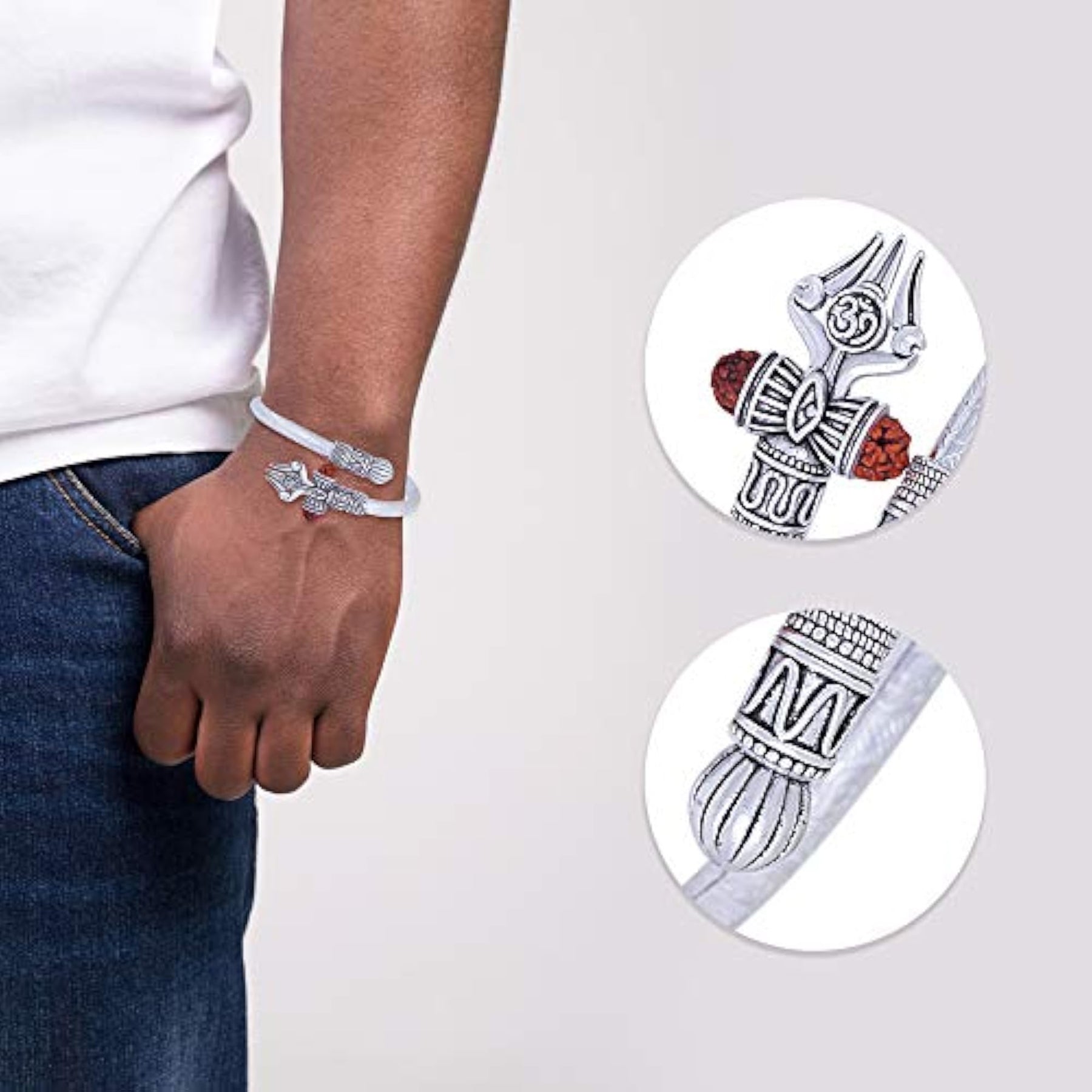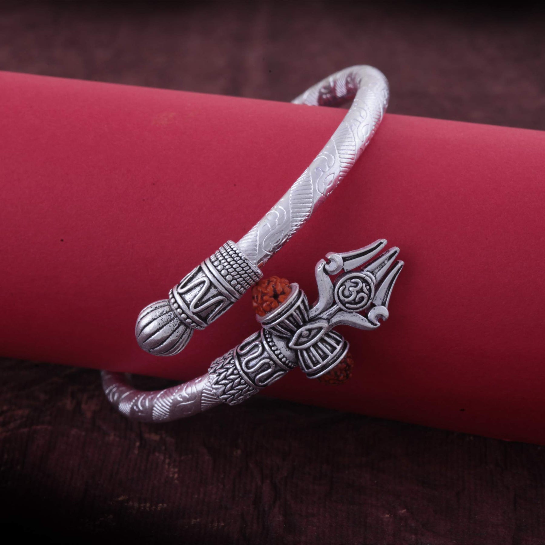 Adjustable Kada made of Pure Brass, Copper & Silver with Mahakal OM Mahadev design. Perfect for spiritual and stylish look.