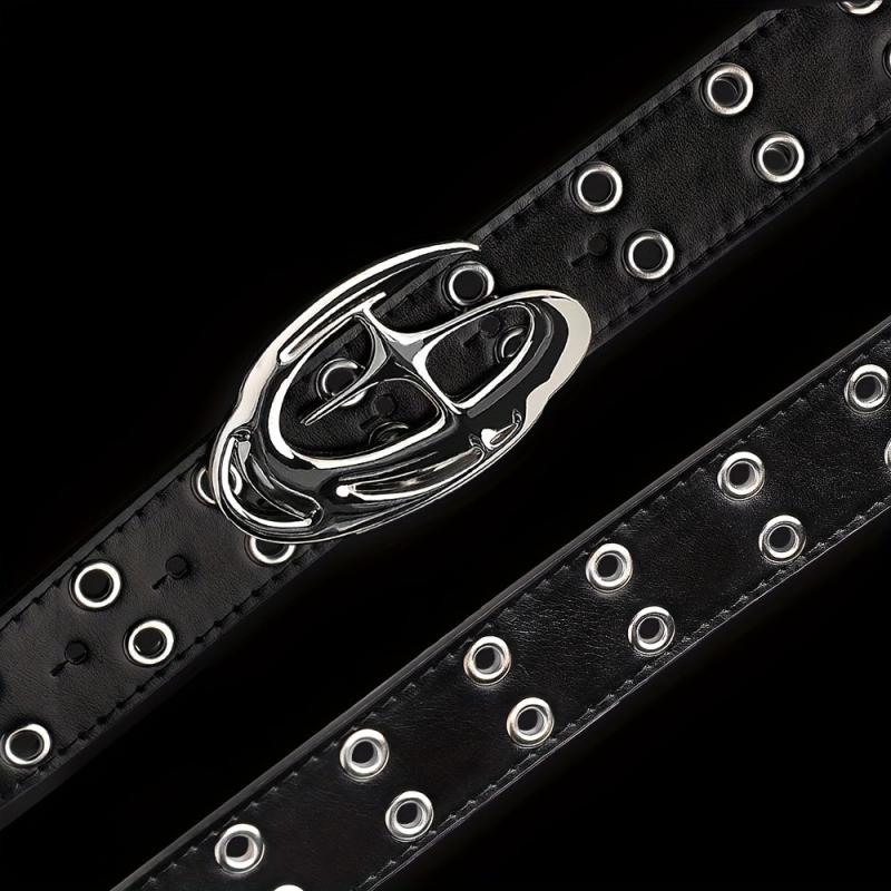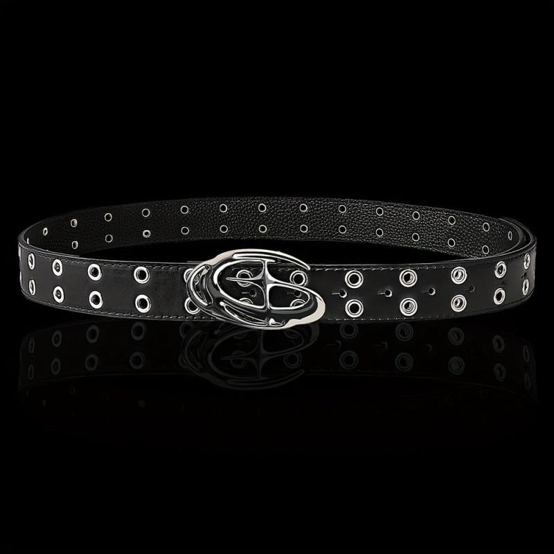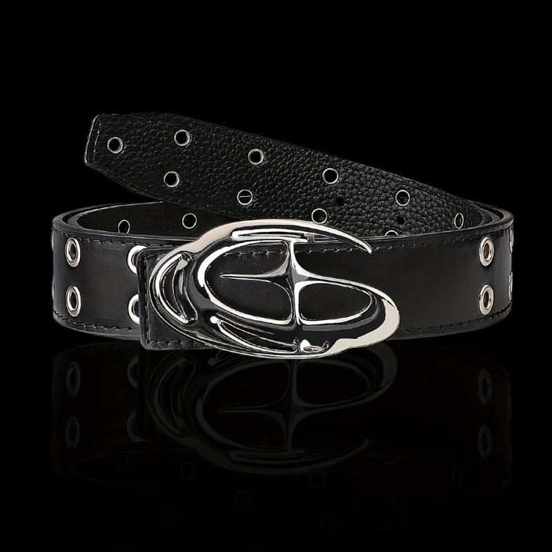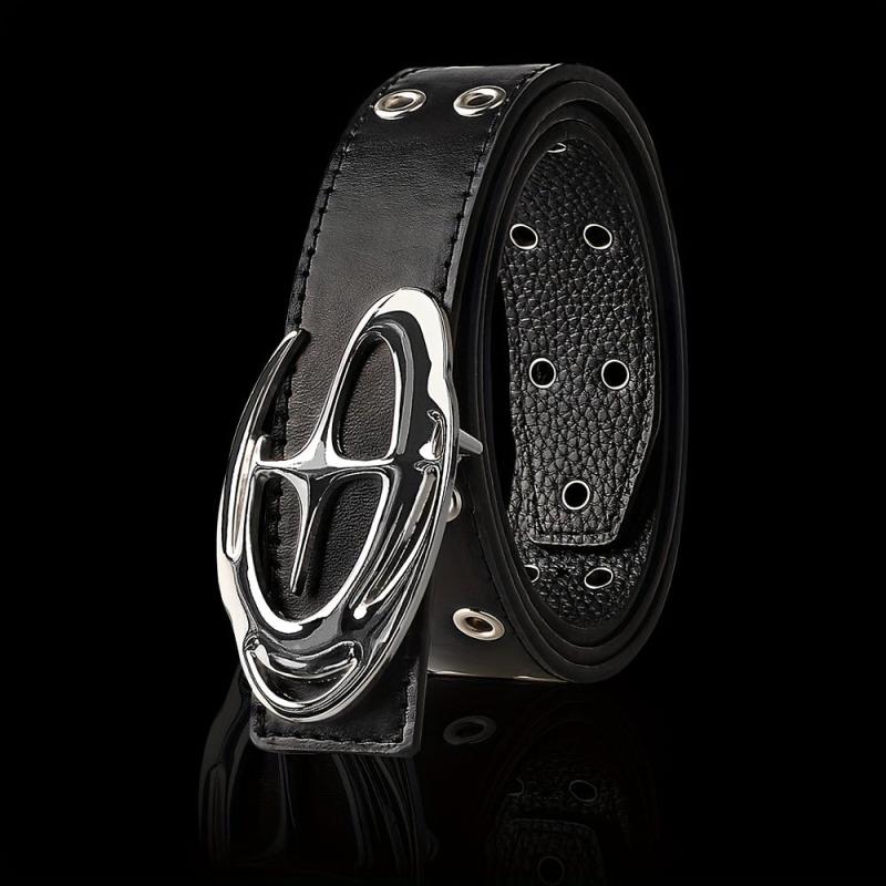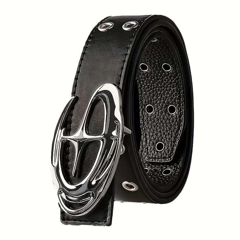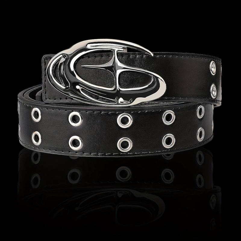 Add a touch of edgy punk style to your outfit with this faux leather belt featuring a star-shaped alloy buckle, textured design, and metal eyelets. Perfect for streetwear and ideal for jeans.