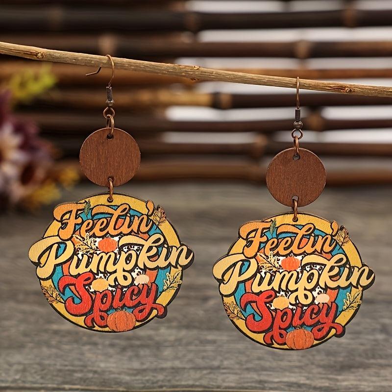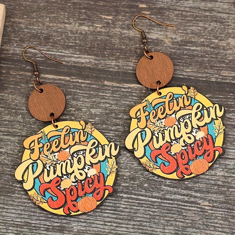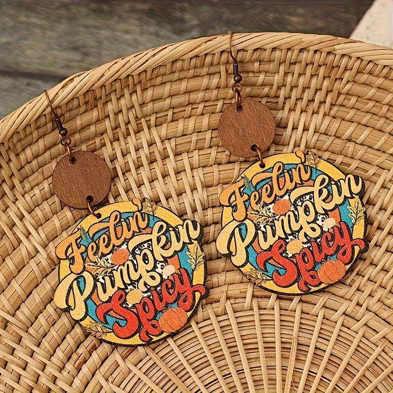 Add a touch of autumn charm with these festive pumpkin spicy round wooden earrings. Perfect for Thanksgiving and fall season, these earrings have a rustic feel to them.