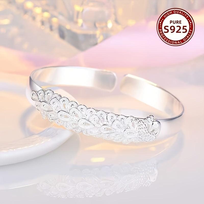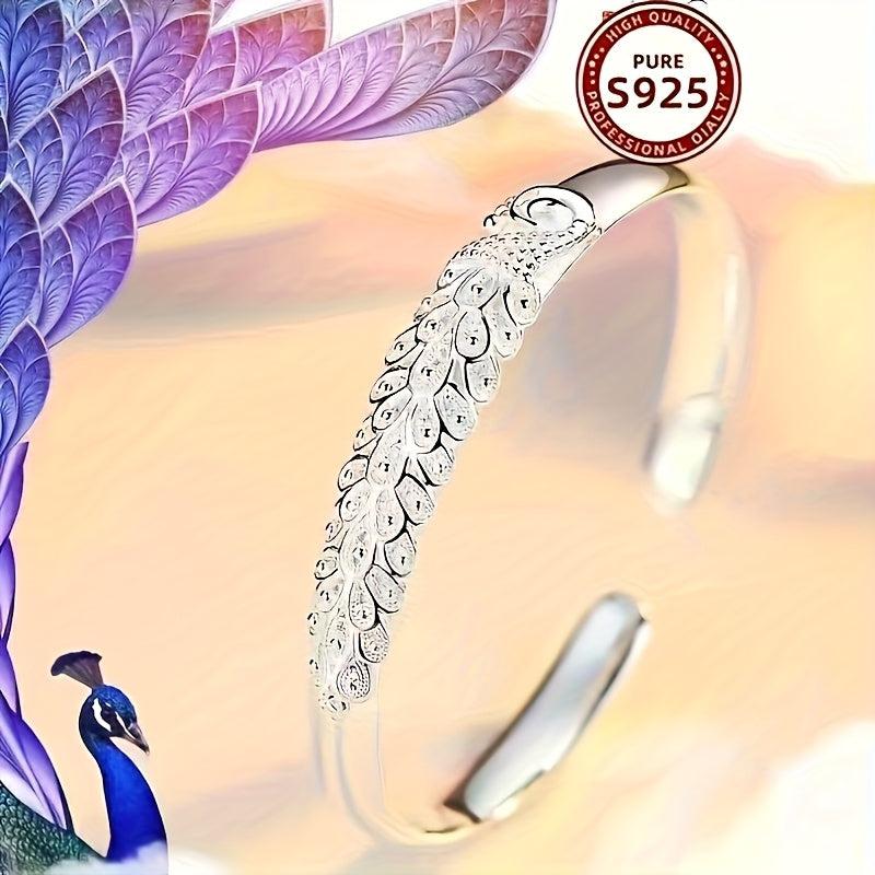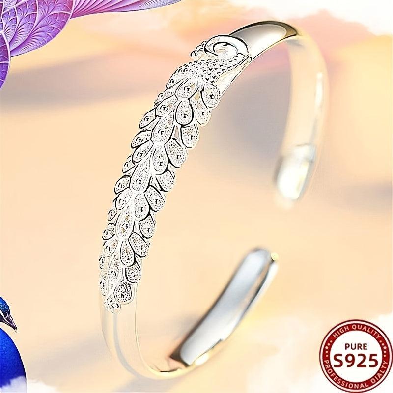 Elegant peacock bracelet made of 925 silver with zinc alloy setting. Perfect for daily wear and special occasions. Ideal gift for mom with a boho style.