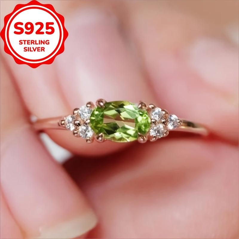This stunning S925 sterling silver ring features a vibrant peridot stone complemented by sparkling zirconia accents. Perfect for weddings, parties, and other evening occasions, this timeless piece adds a touch of sophistication to any outfit.