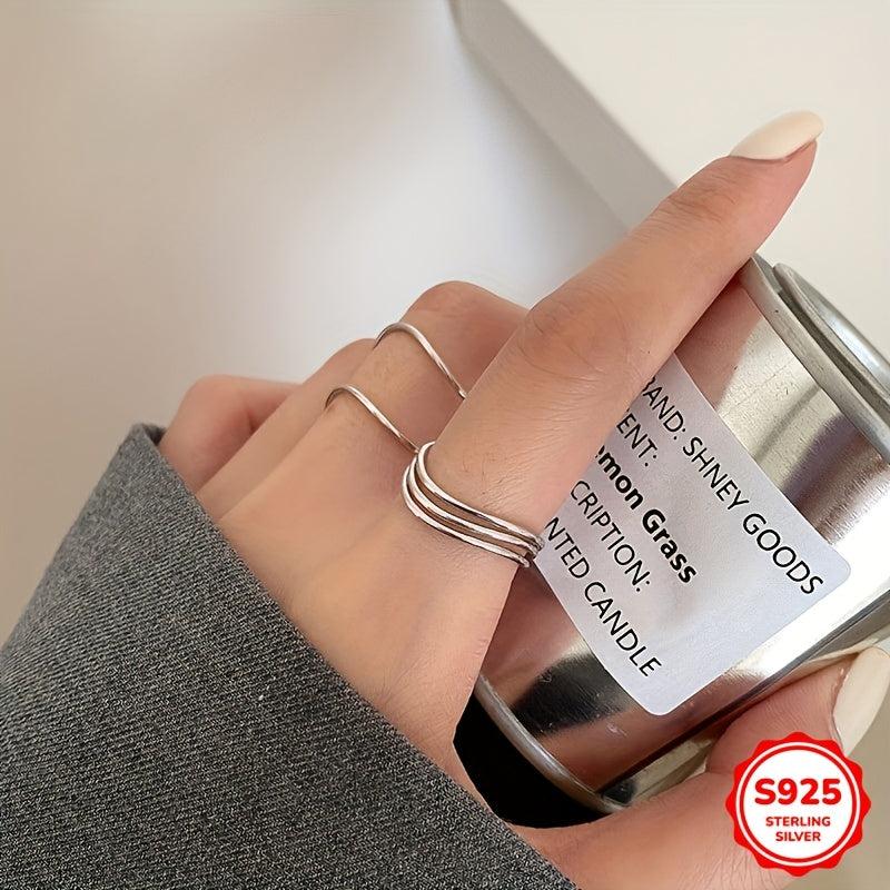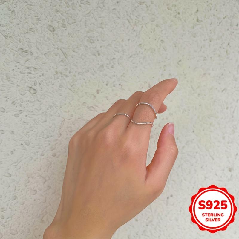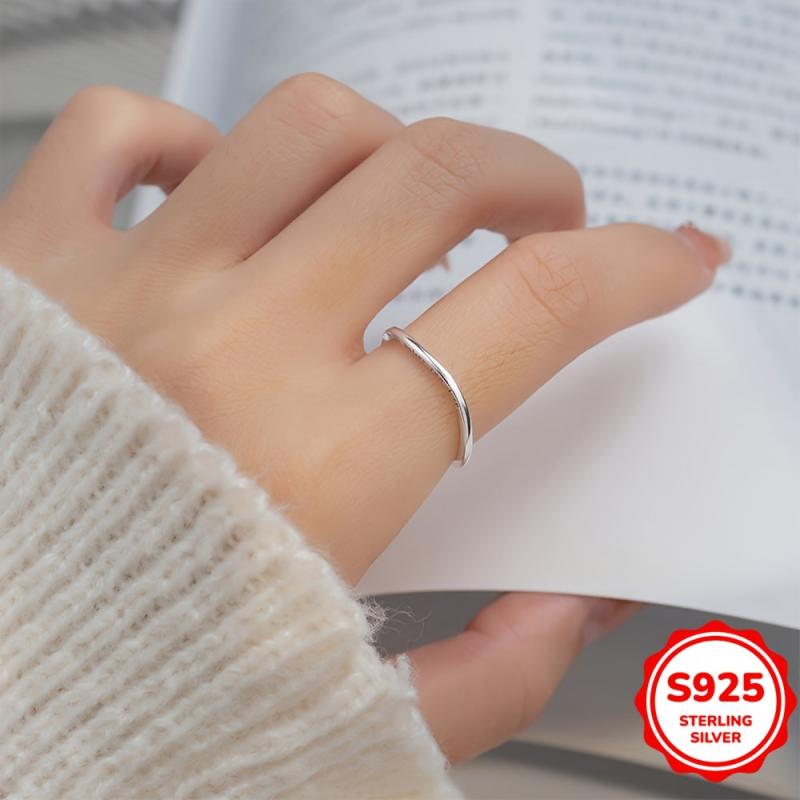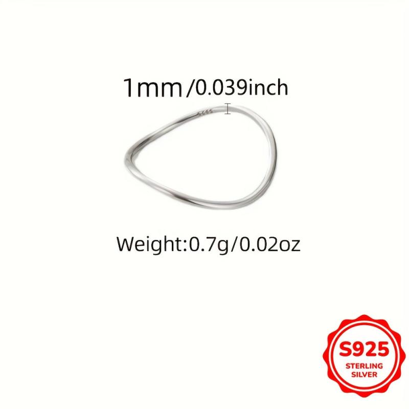 This delicate and fresh S925 pure silvery arc shaped ring is fashionable and thin, perfect for stacking, and ideal for a holiday look.
