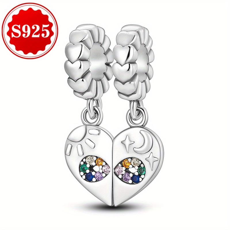 This S925 sterling silver charm features a heart-to-heart design, perfect for bracelets. It is ideal for creating personalized jewelry or as a thoughtful birthday gift.