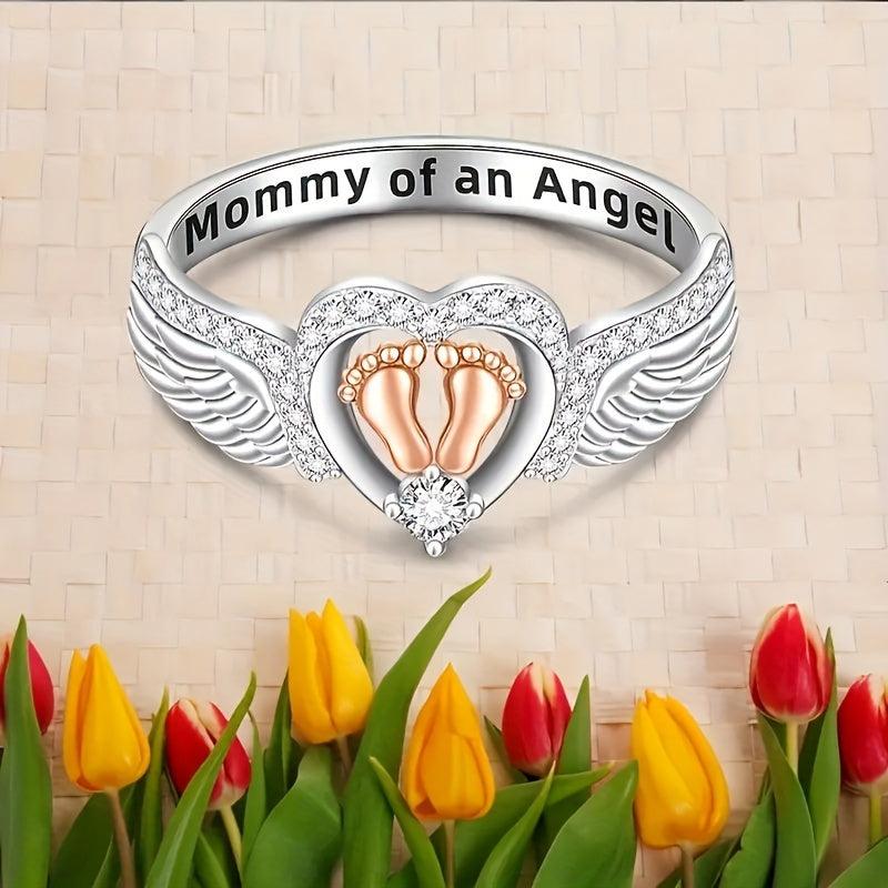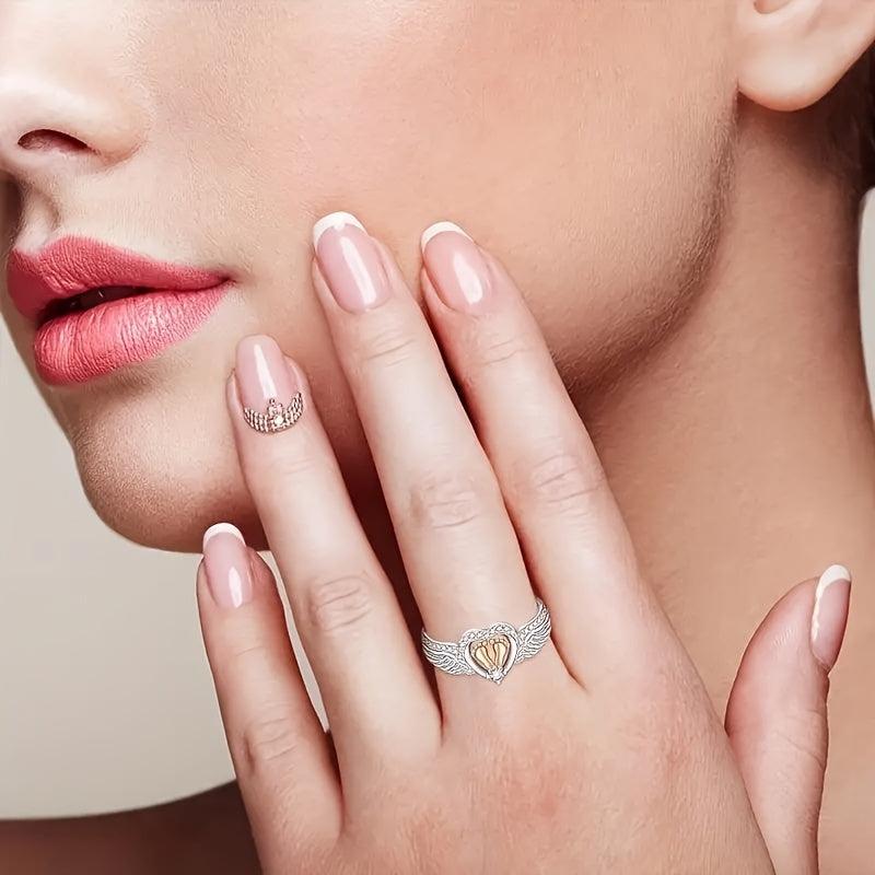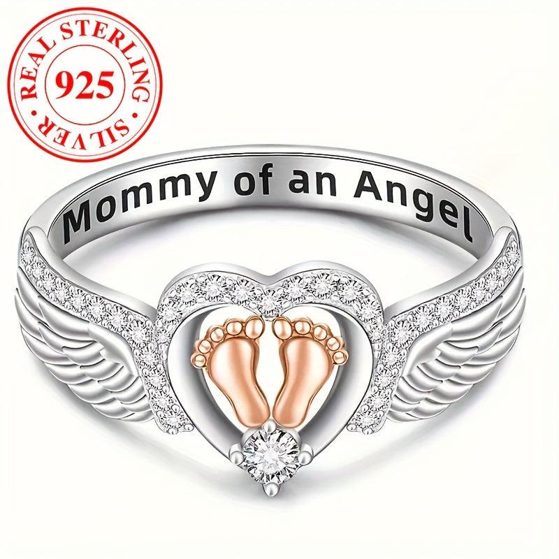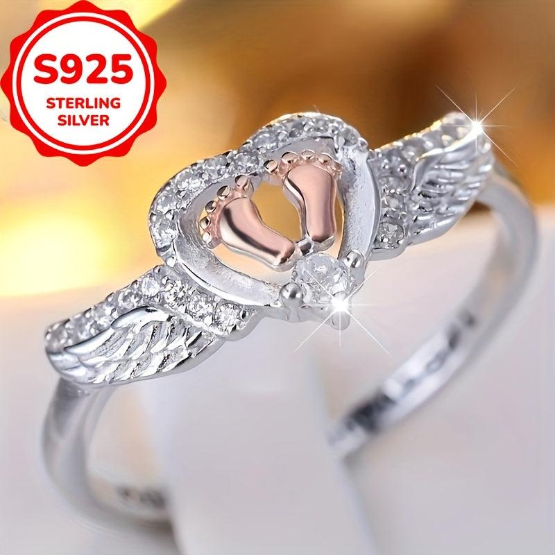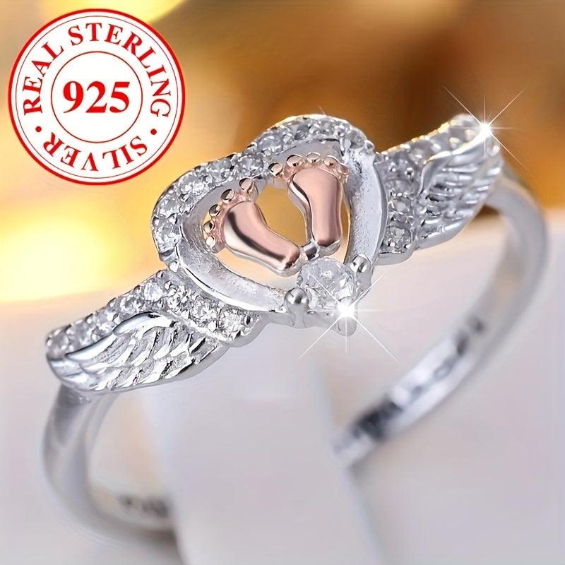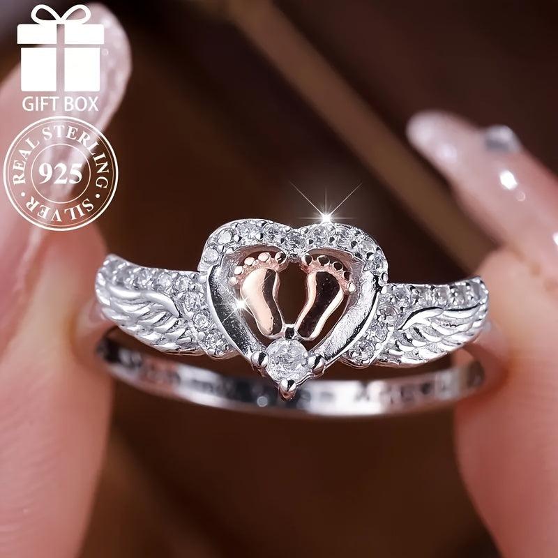 This unique S925 silver ring features a dual footprint design in the shape of a heart with an angel accent. It is a fashionable and niche accessory suitable for daily casual wear. Weighs 2.4g.