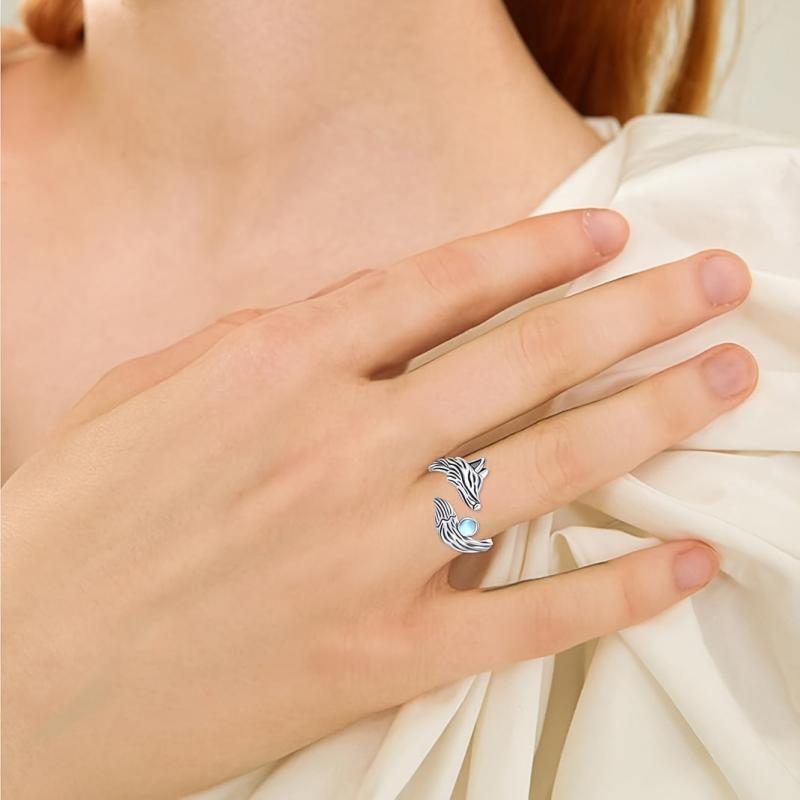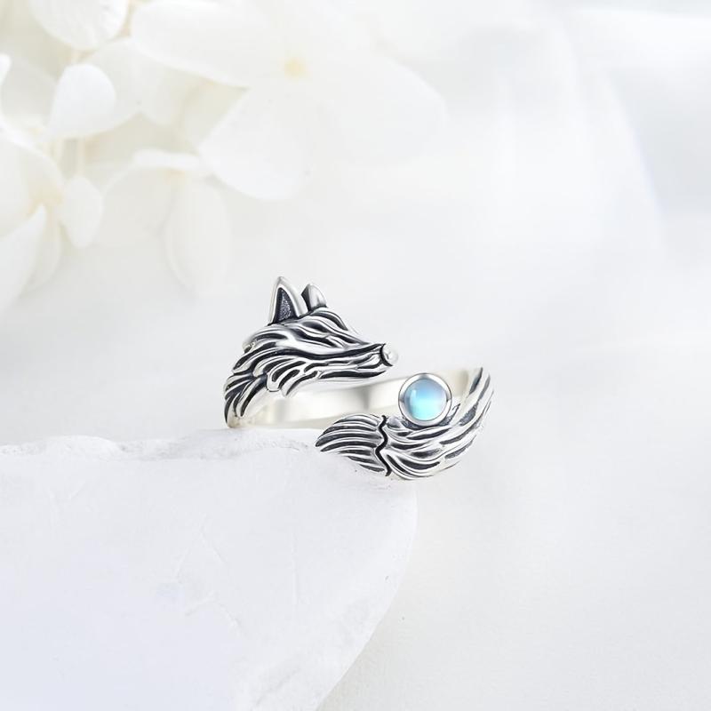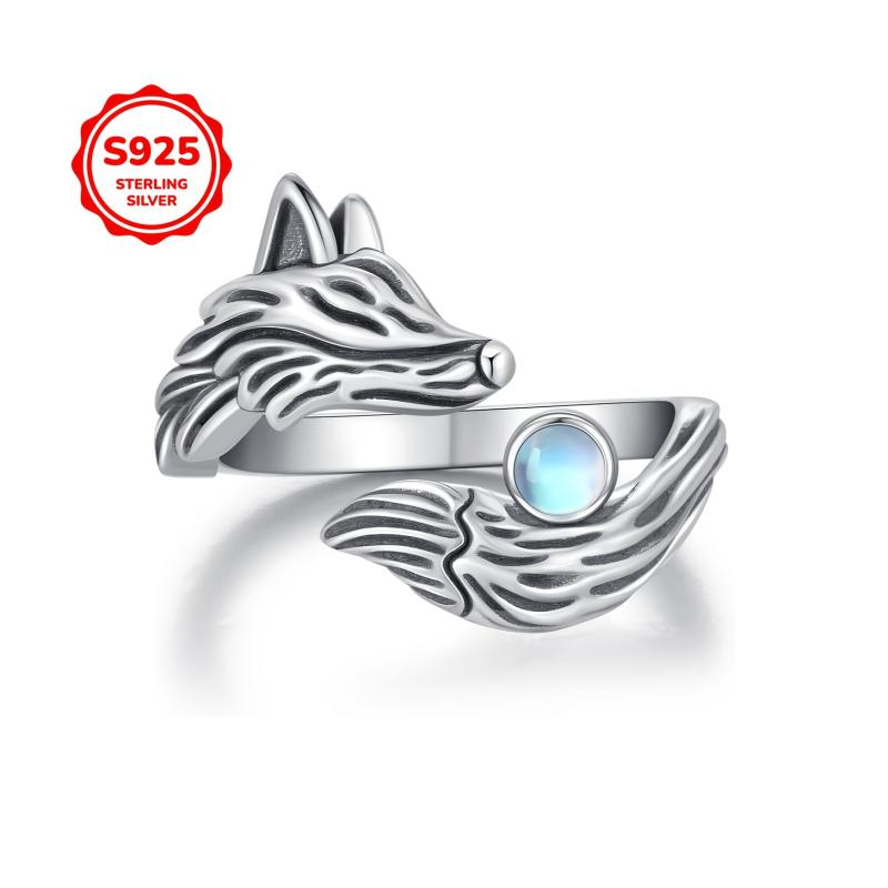 Embrace a touch of retro style with this S925 silver fox moonstone ring that features an adjustable open design. The ring is perfect for women who love unique and elegant jewelry.