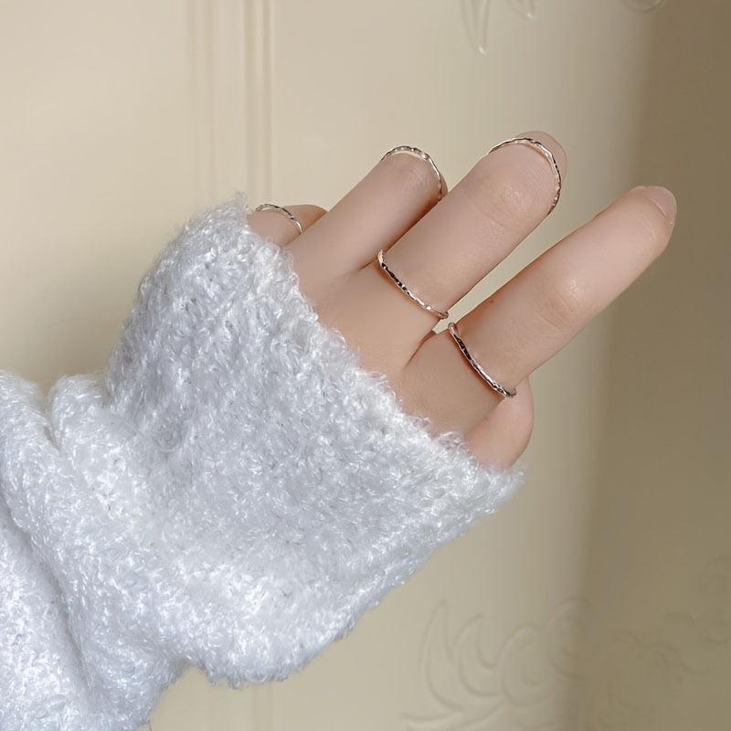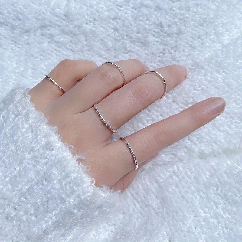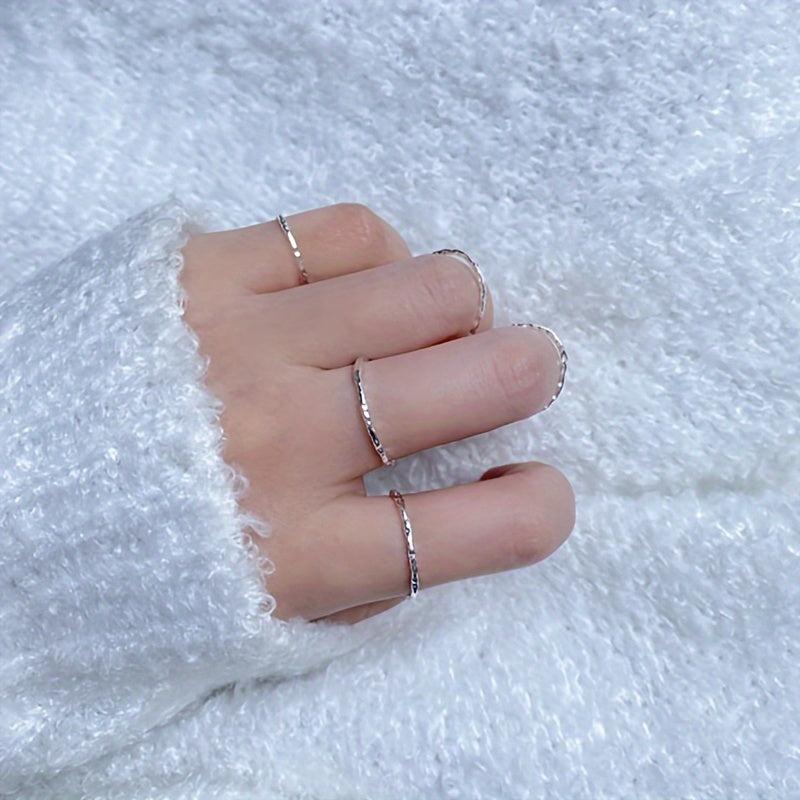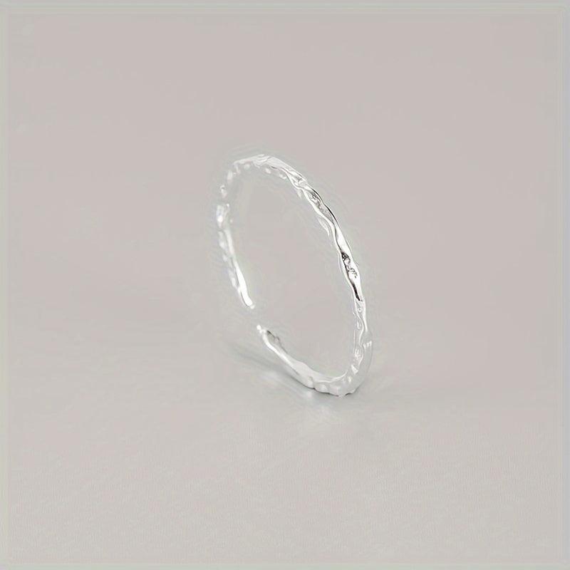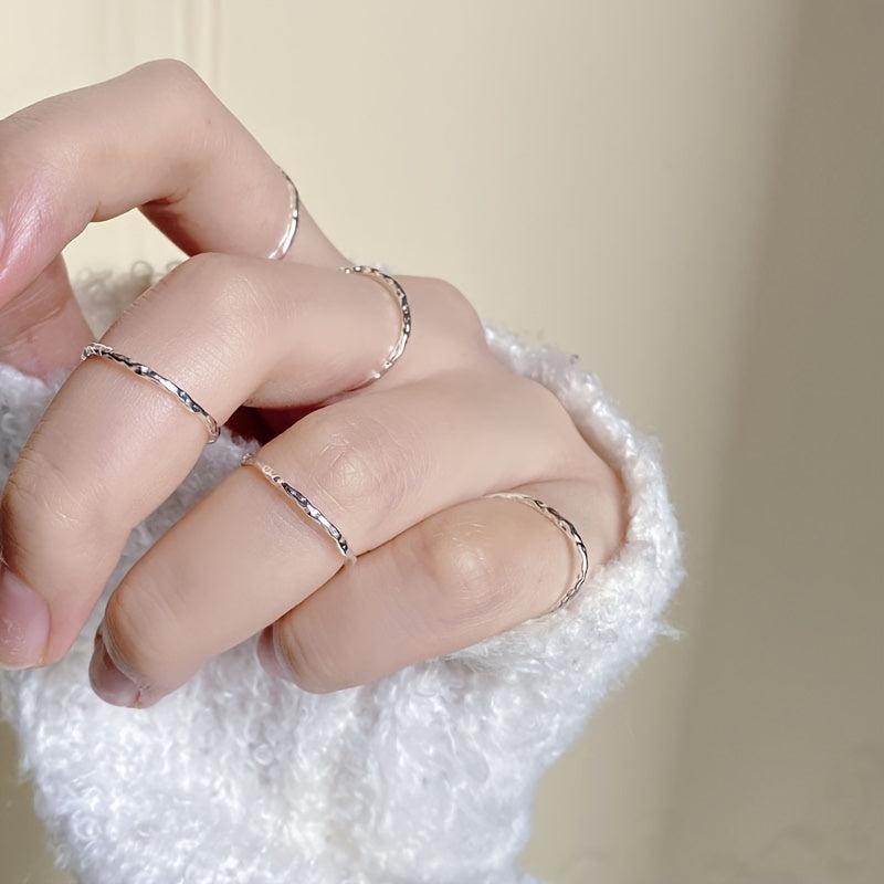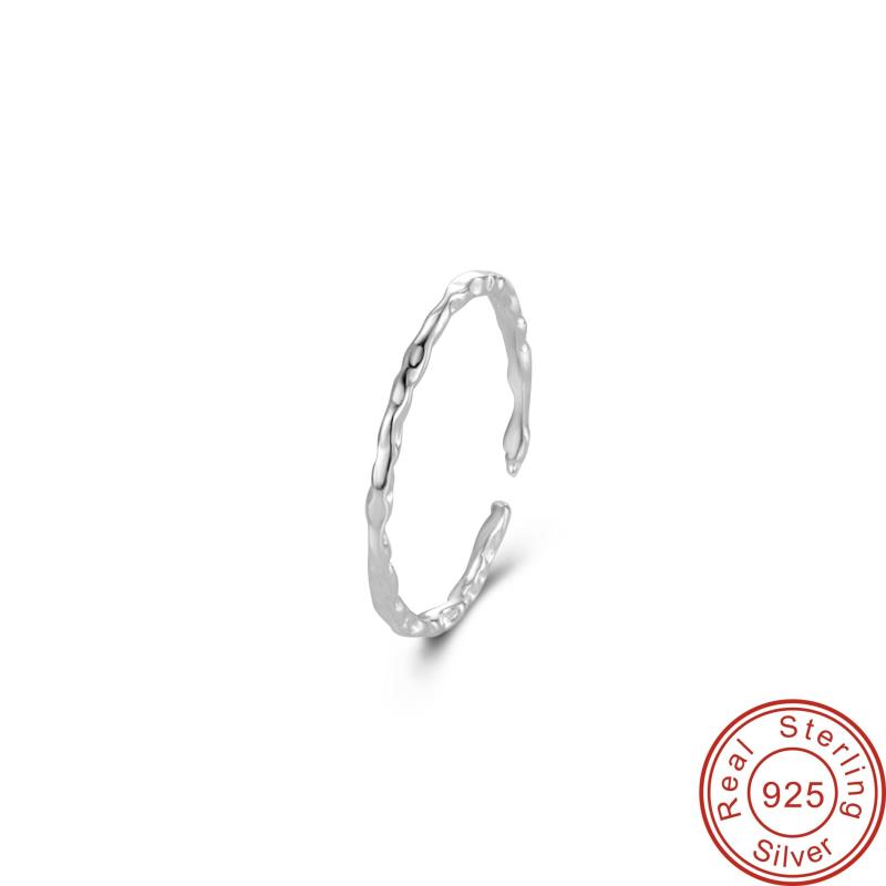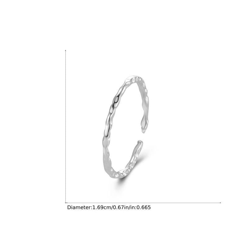 This S925 pure silvery version mini open ring features an irregular wrinkle texture design. It is adjustable and lightweight with a net weight of 0.6g.