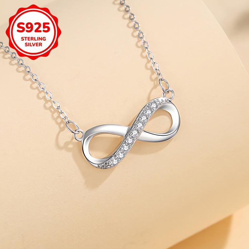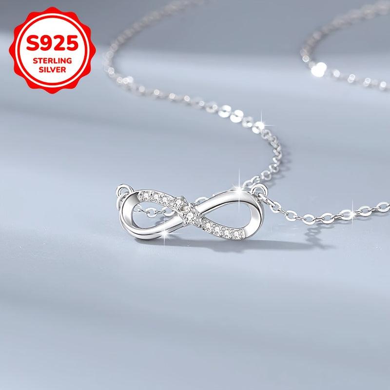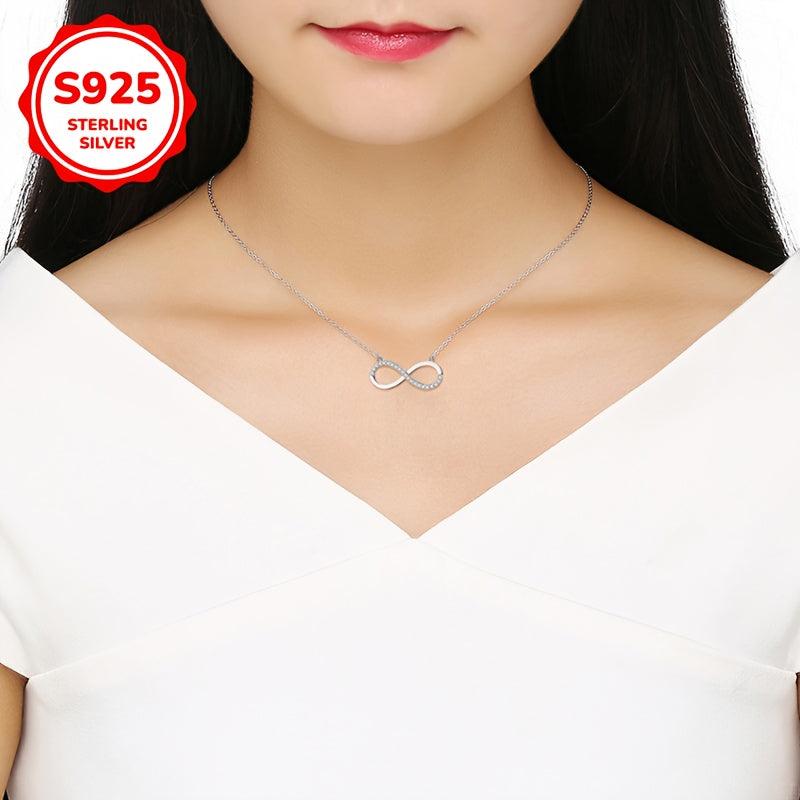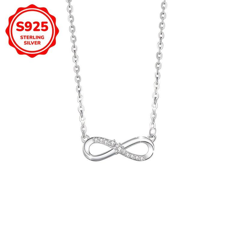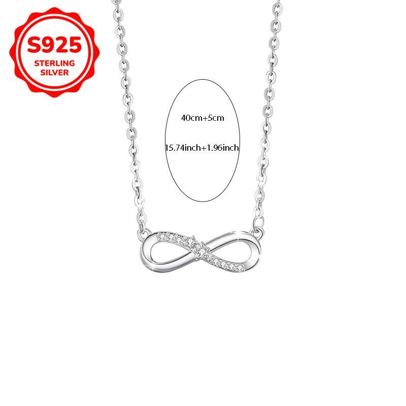 Beautiful S925 silver necklace featuring an infinity symbol with sparkling cubic zirconia. This necklace is perfect for your mother, daughter, or girlfriend as a Valentine's Day gift.