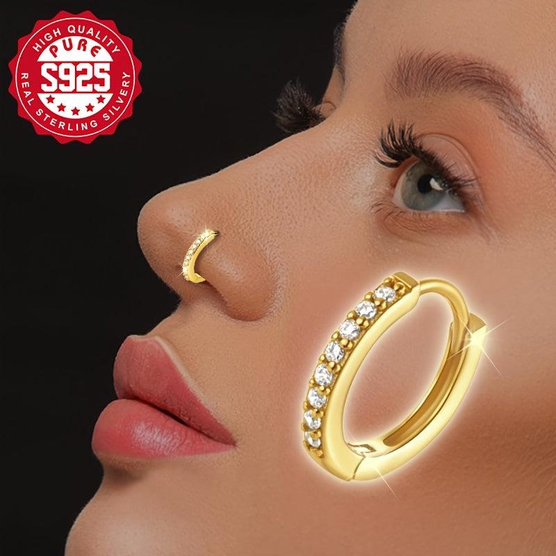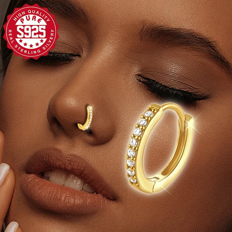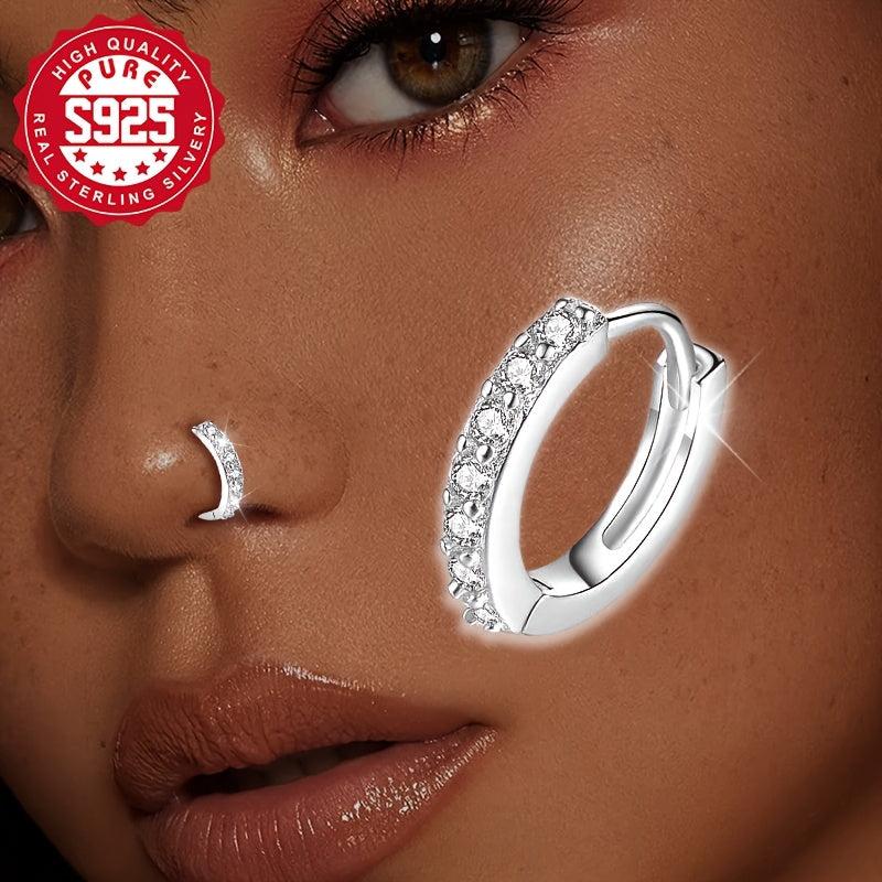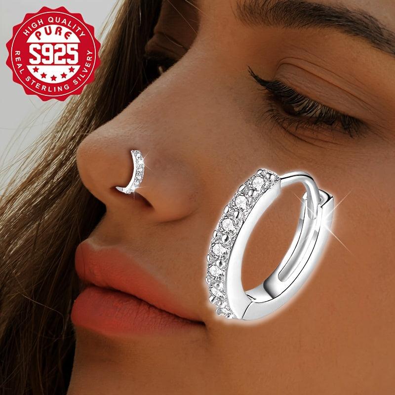 Get the perfect accessory for any occasion with this elegant S925 silver nose ring featuring synthetic zirconia for a dazzling look. Ideal for parties, music events, and daily wear.