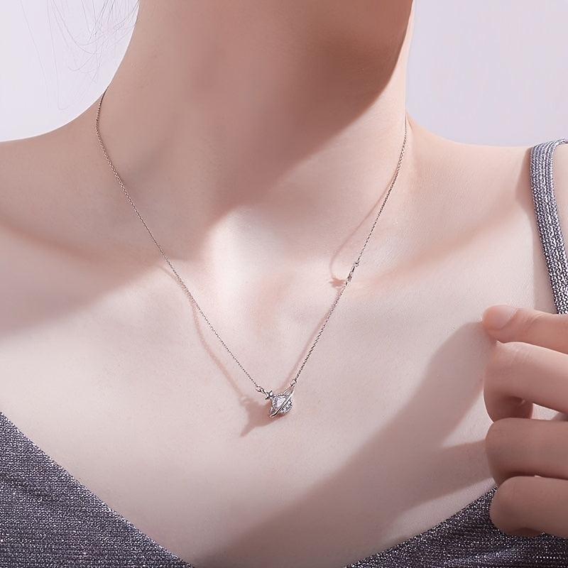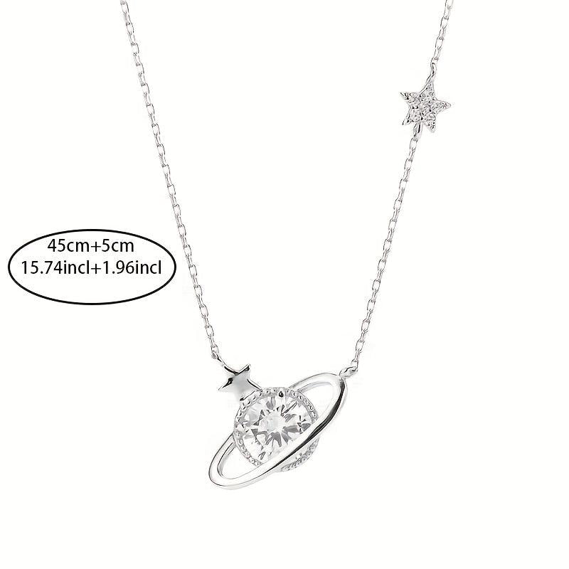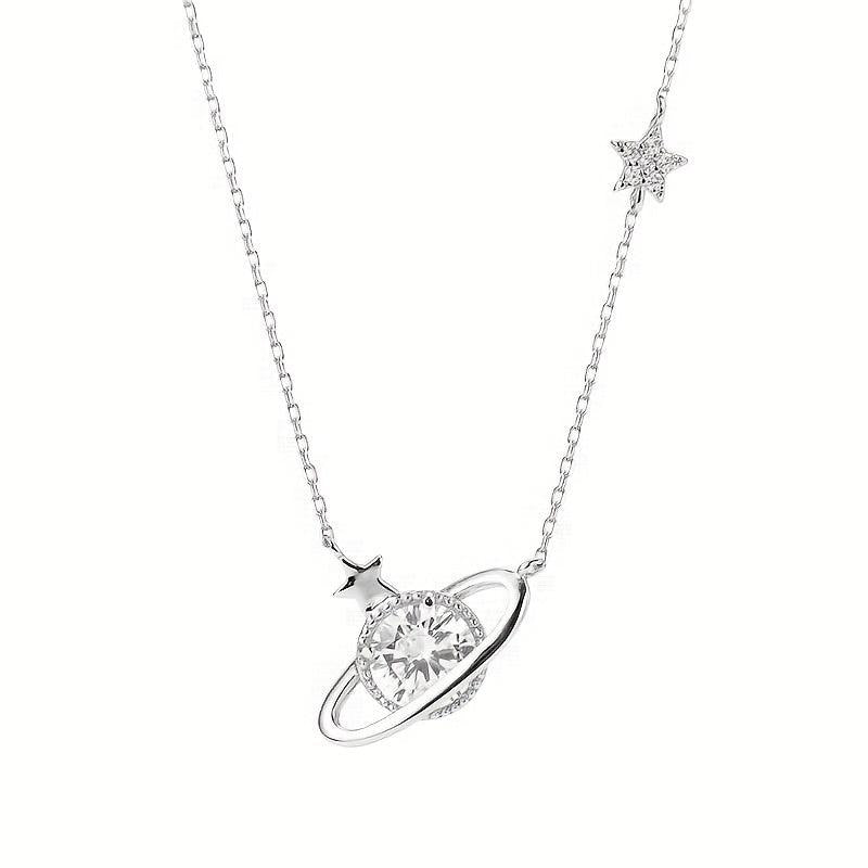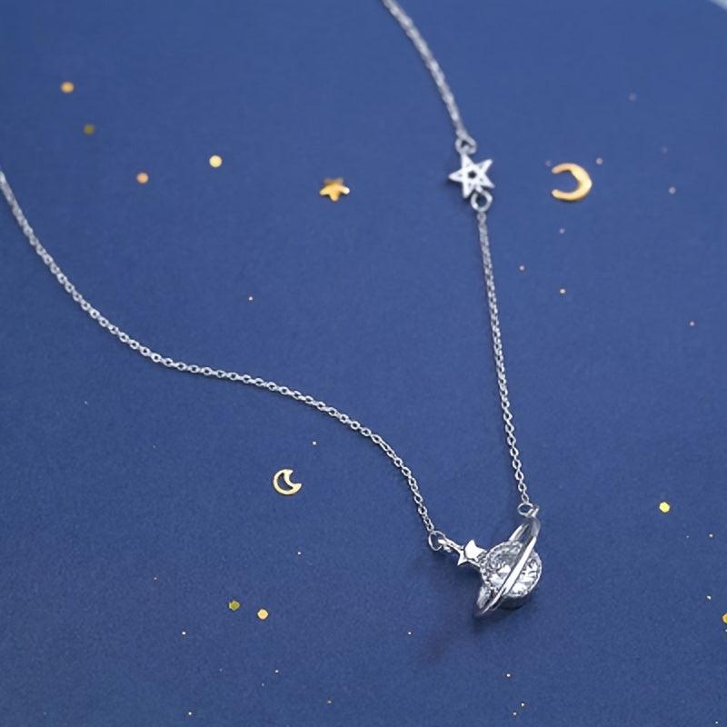Get this unique S925 silver pearl planet necklace designed with a hollow planet charm. It's a perfect gift for your girlfriend that combines elegance and style.