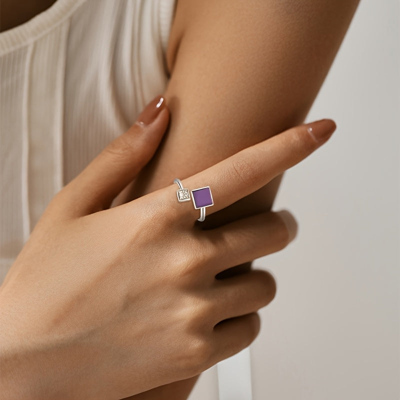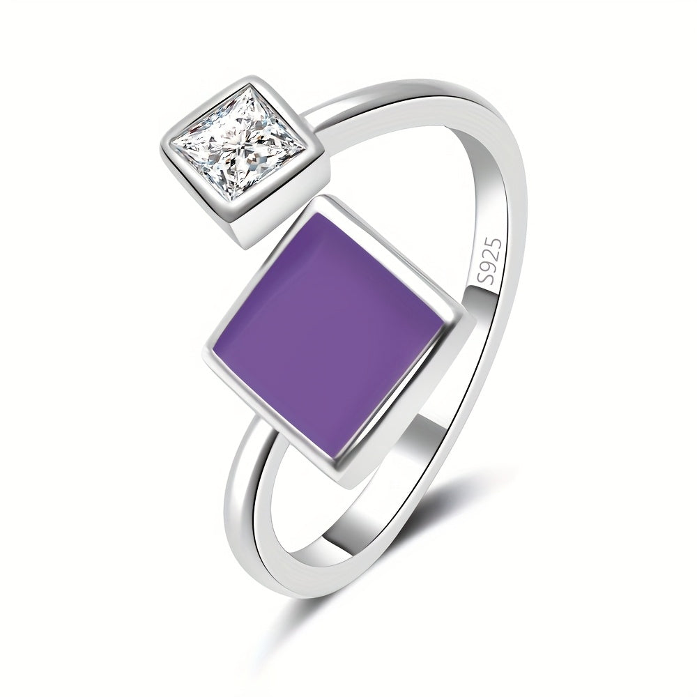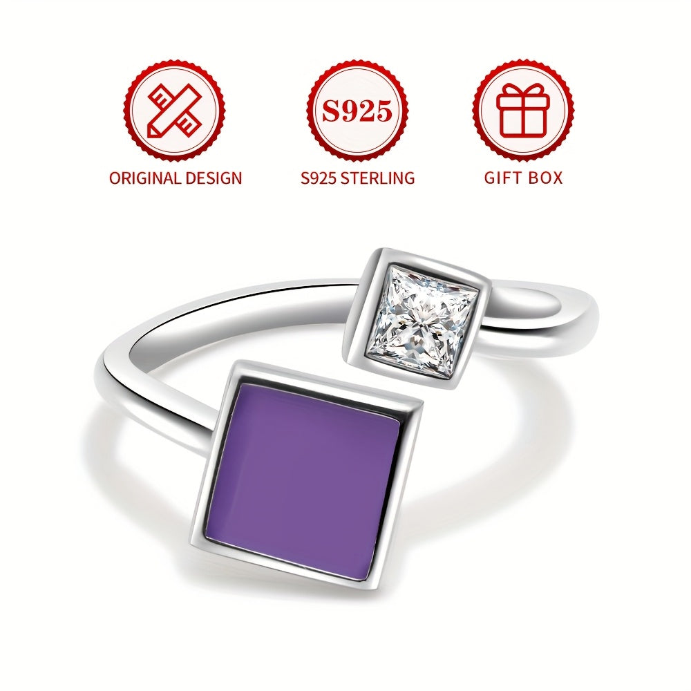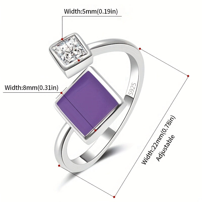 This stunning S925 silver ring features a square purple zirconia that sparkles in the light. It makes a perfect holiday gift for women.