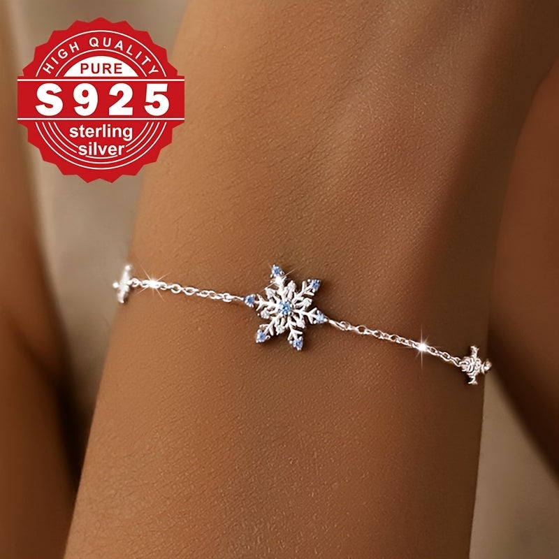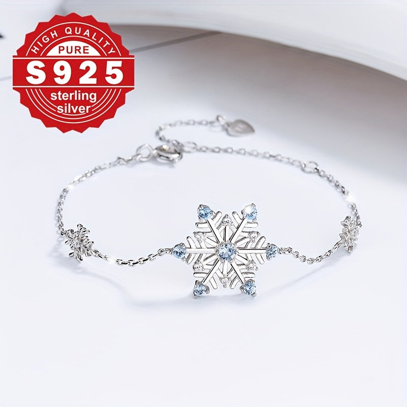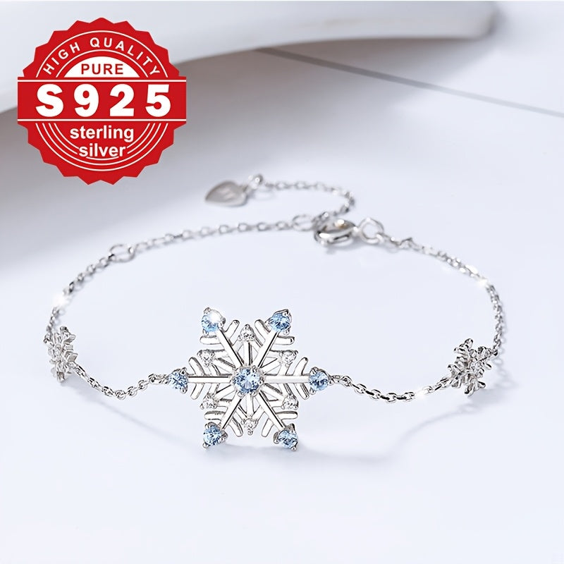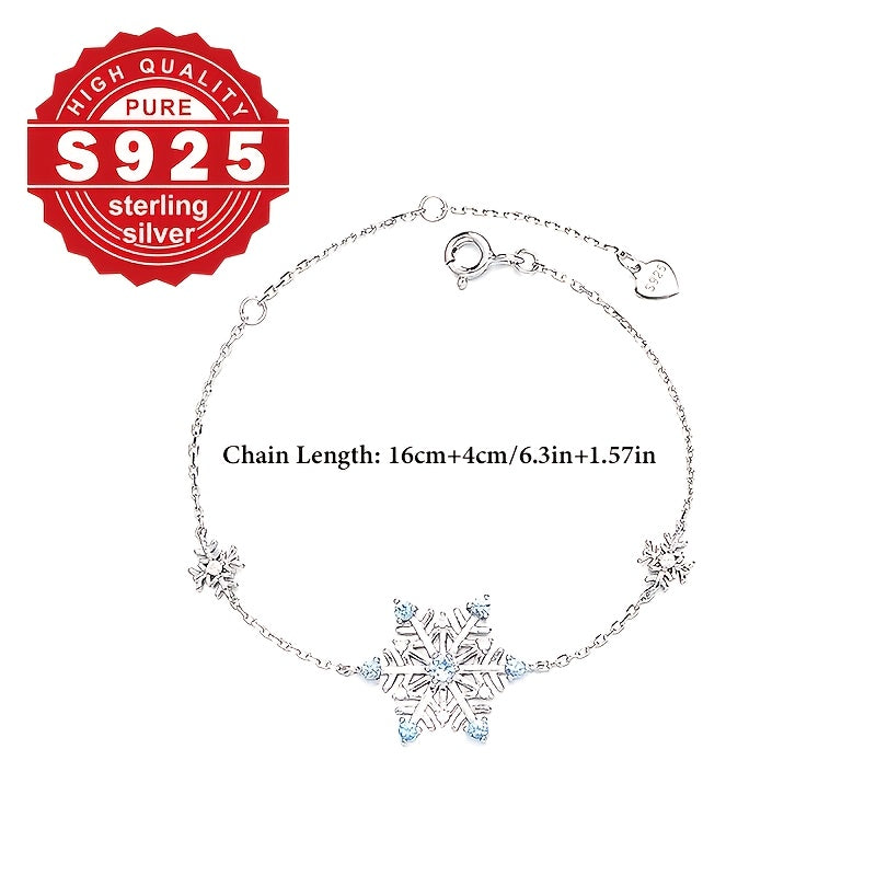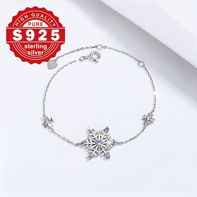 Elegant snowflake bracelet made of pure silver adorned with zirconia, perfect gift for wife or daughter.