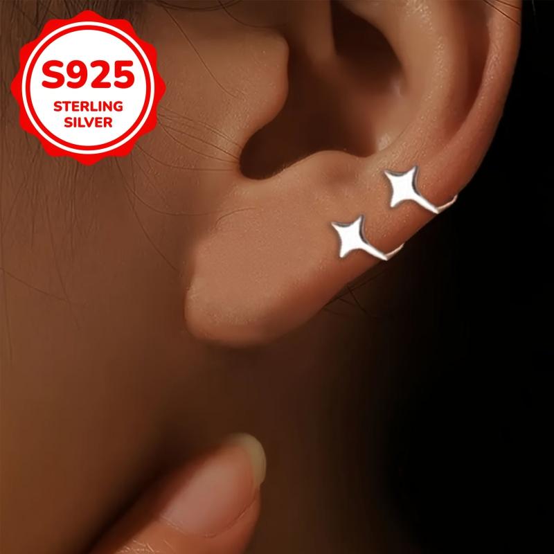 Pair of elegant clip-on earrings made of S925 silver, perfect for sensitive ears. Lightweight and suitable for daily wear or special occasions like Mother's wedding.