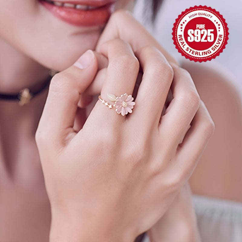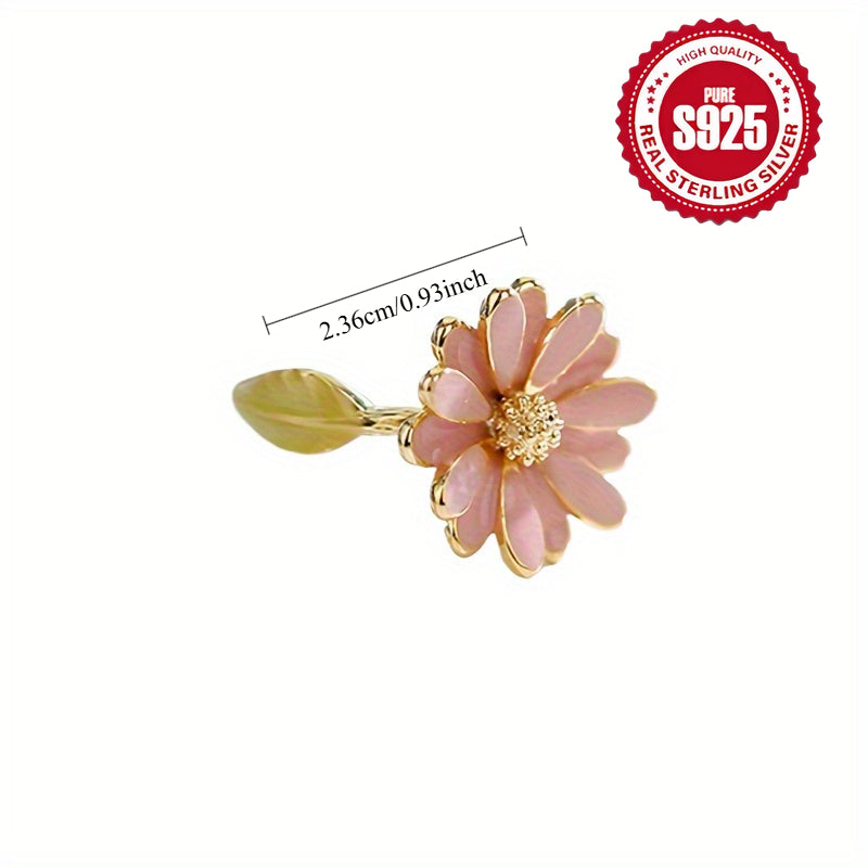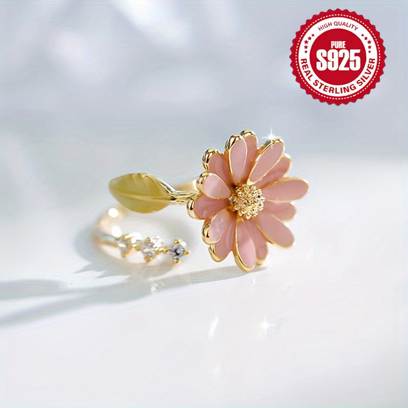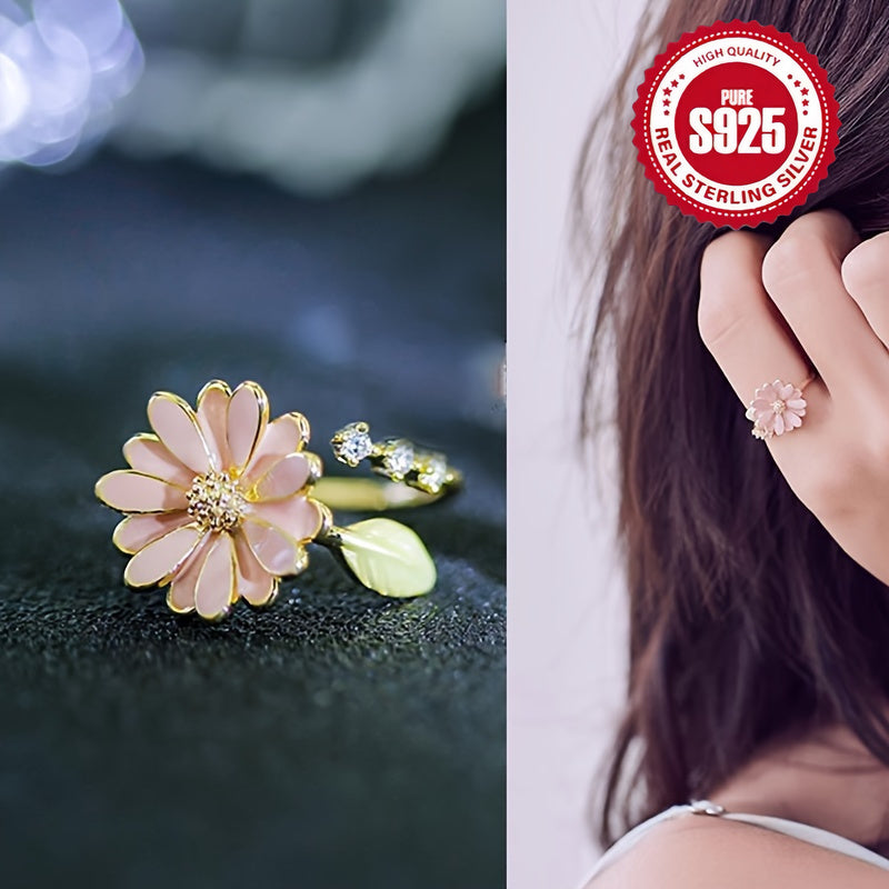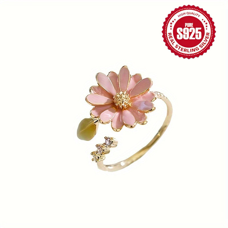 S925 Silver Sweet Spring Flower Leaf Golden Open Loop Gift