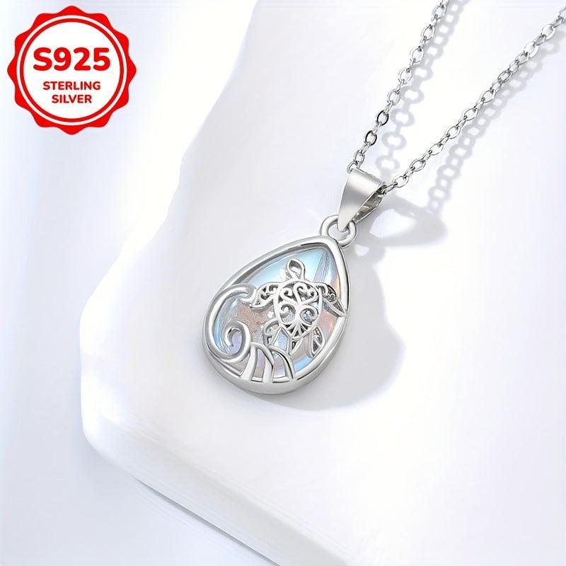 Elevate your summer style with this elegant pendant necklace crafted from S925 silver. The necklace features a charming turtle design with a beautiful moonstone, perfect for your vacations.