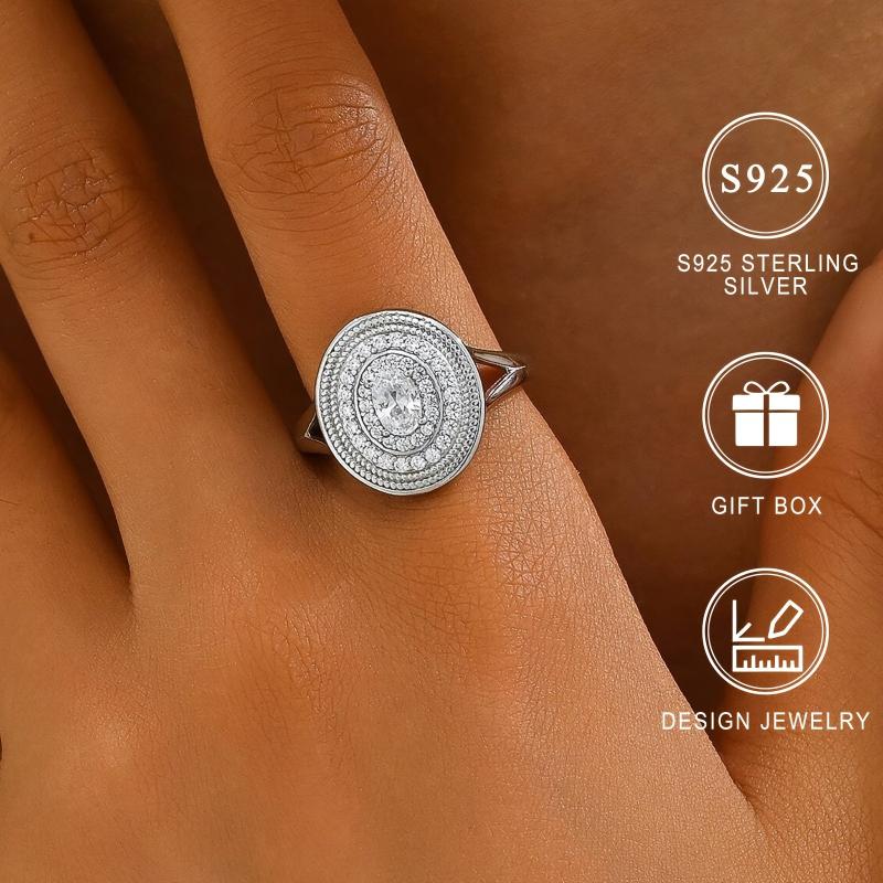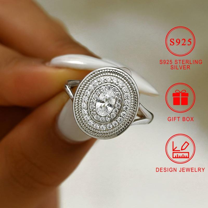 Elegant S925 silver ring embedded with a sparkling synthetic zirconia oval, perfect for daily wear or gifting. Durable and shiny zirconia stone.