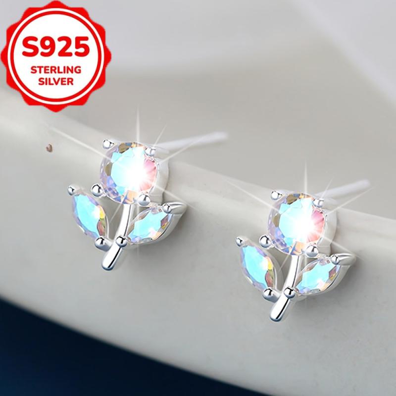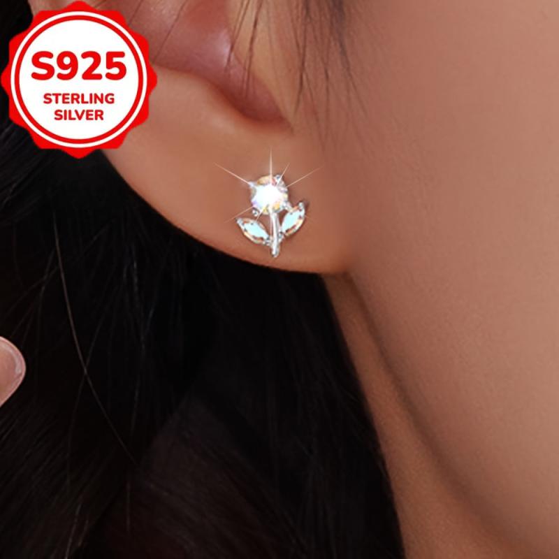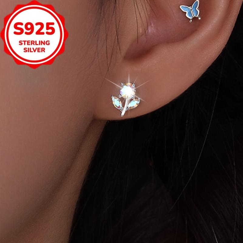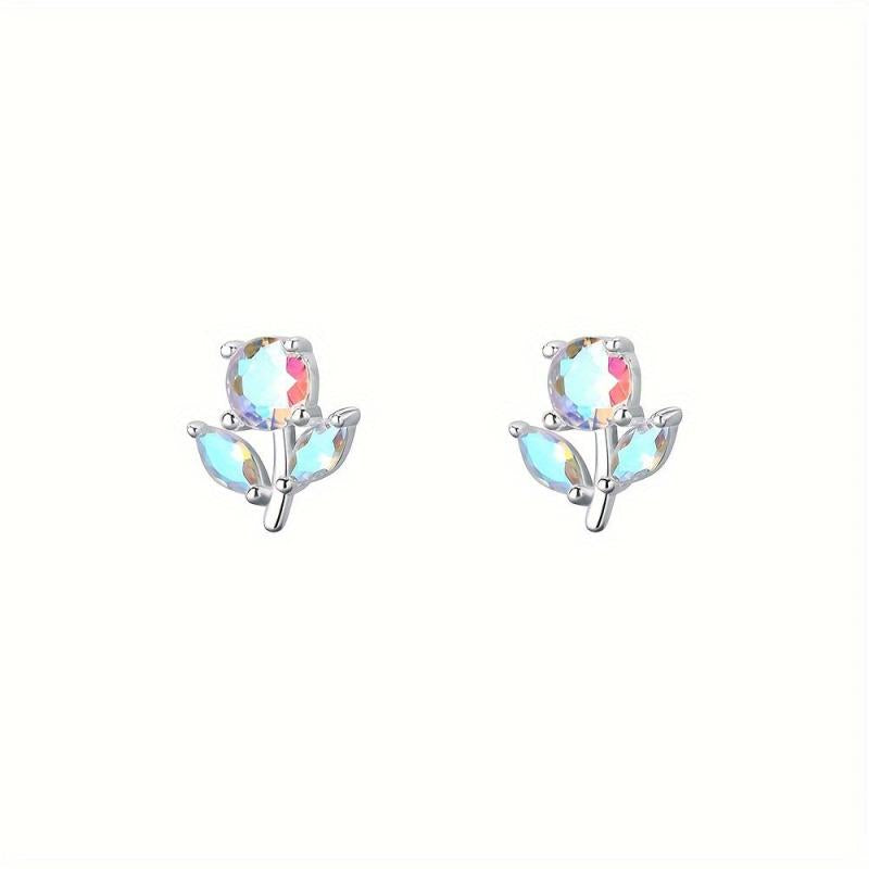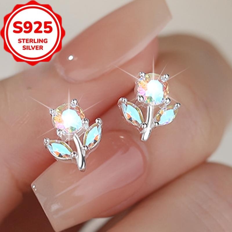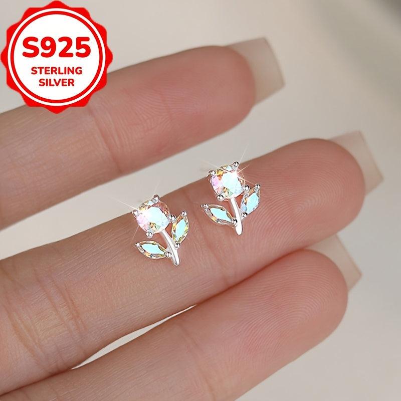 Get this stunning S925 pure silvery earrings set featuring colorful synthetic zirconia flowers. Perfect for daily outings and parties.