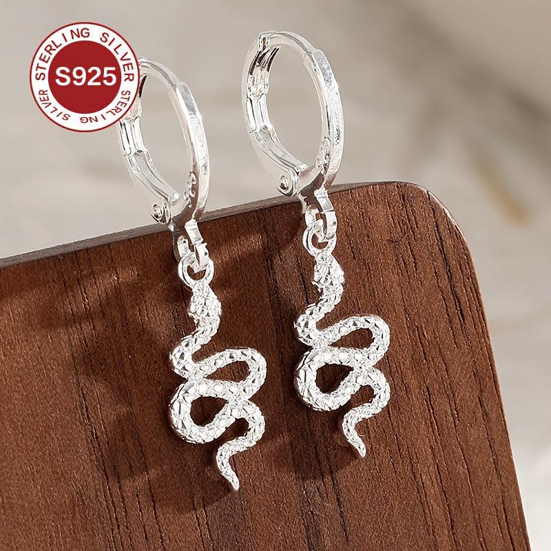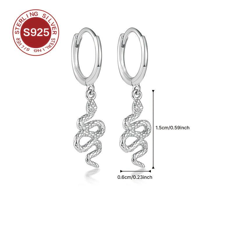 These stylish S925 sterling silver snake hook earrings are ideal for couples and friends. Perfect for daily wear, they are low-allergy and have a textured design. Included are perfect for va