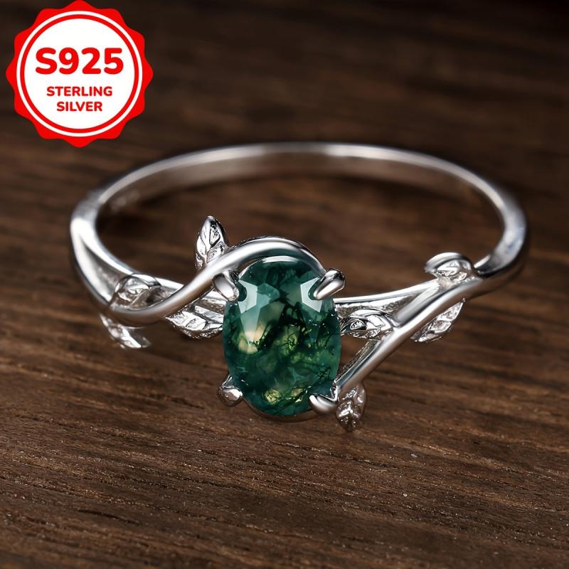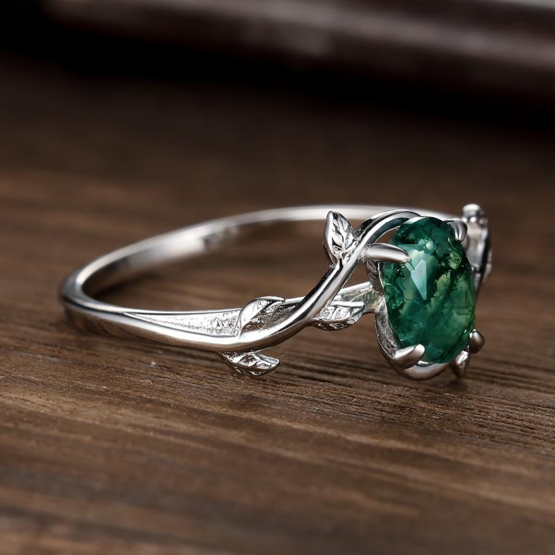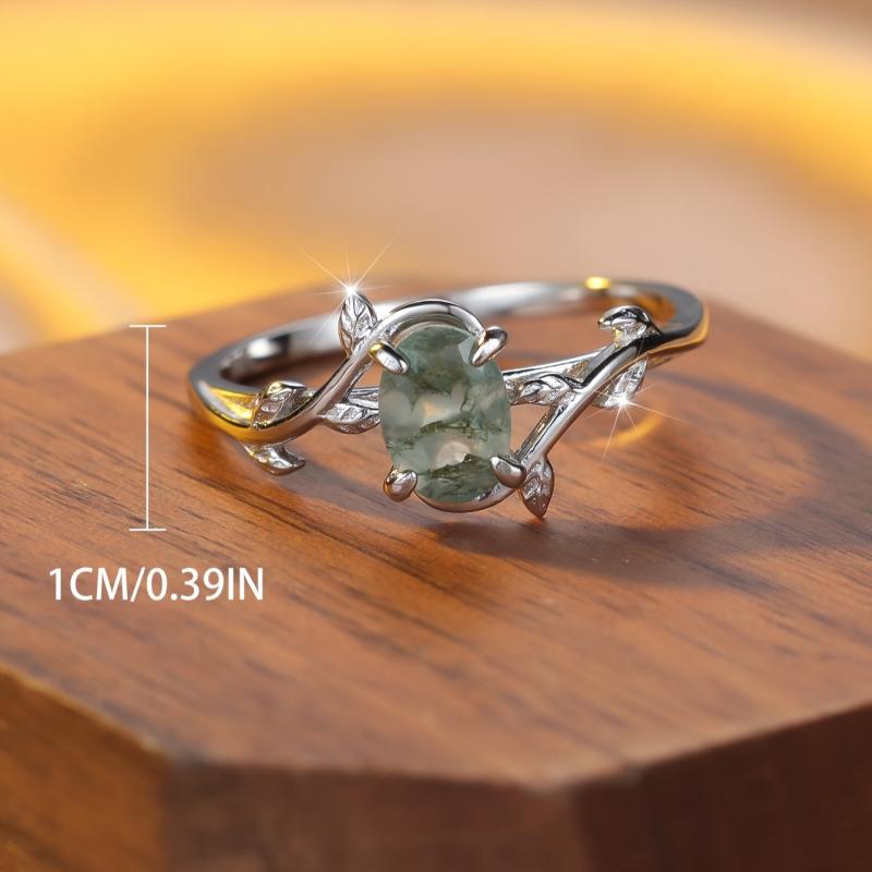 This stunning cocktail ring features a round green chalcedony gemstone set in a leaf-inspired four-prong setting. Perfect for engagement, weddings, or any special occasion.