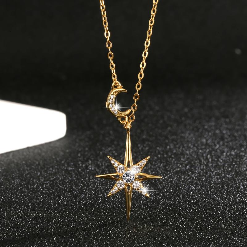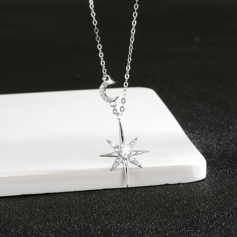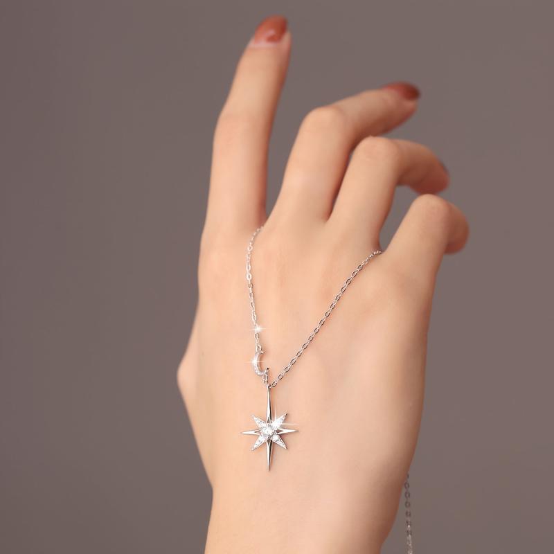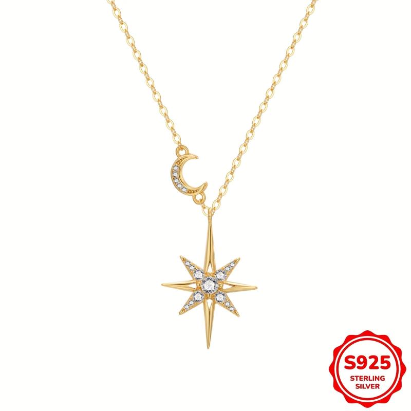 This stunning necklace features an octagonal star pendant embellished with 5A cubic zirconia, coupled with a versatile collarbone chain. Crafted from high-quality S925 sterling silver, this piece is perfect for women.