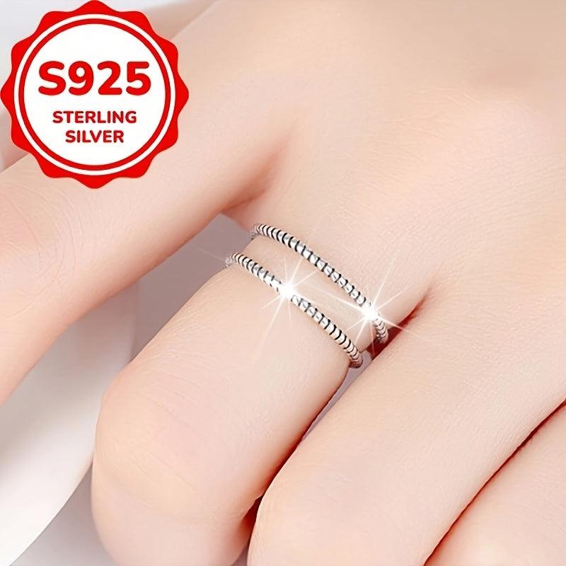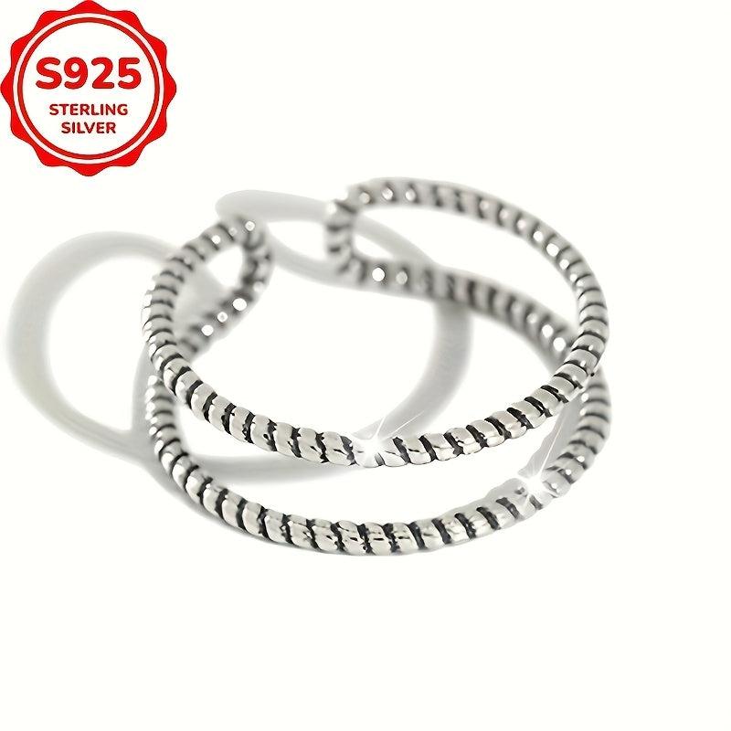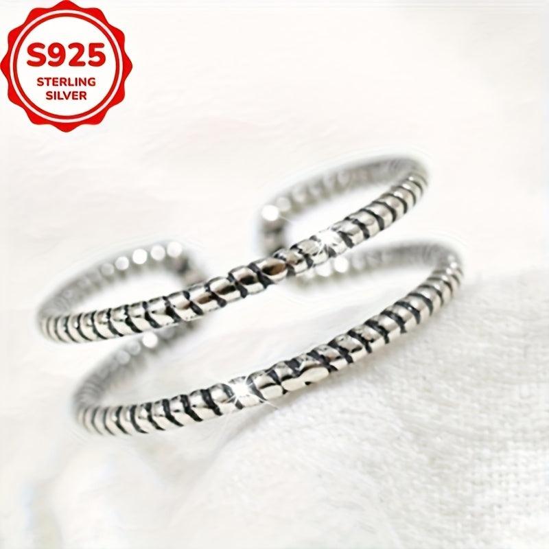S925 Sterling Silver Open Ring Retro Braided Twist for Women