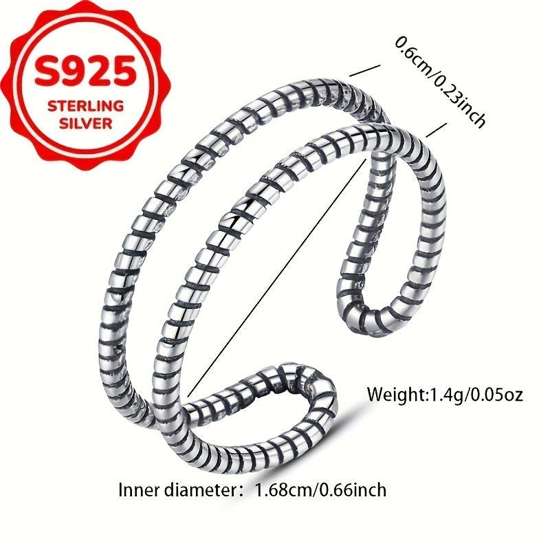 This S925 sterling silver open ring features a retro braided twist design, ideal for daily wear and special occasions. It is the perfect gift with a version finger ring Christ.