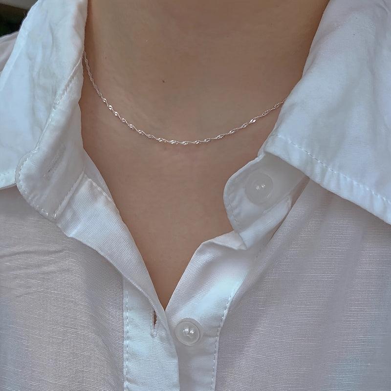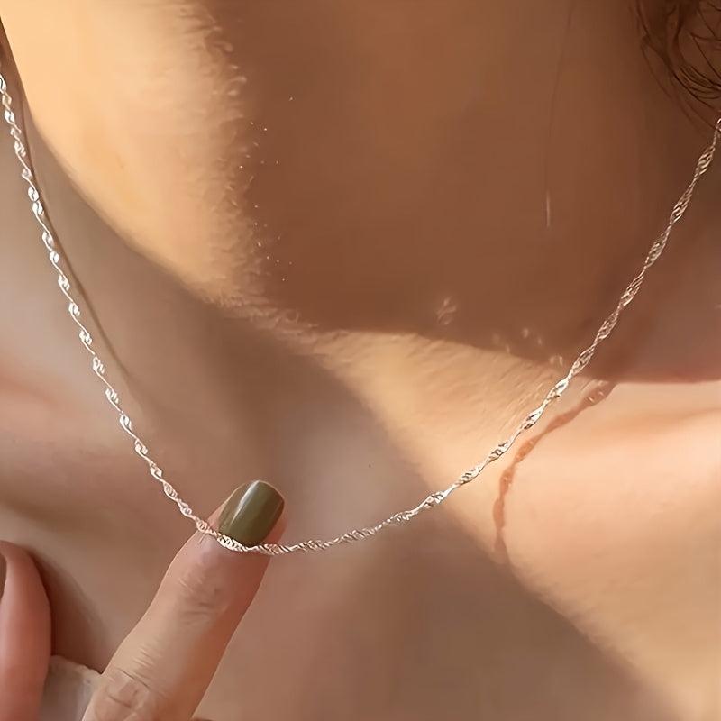 Elevate your style with this stunning S925 sterling silver wave chain necklace. Perfect for parties and bohemian looks.