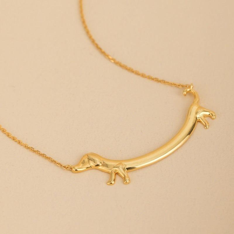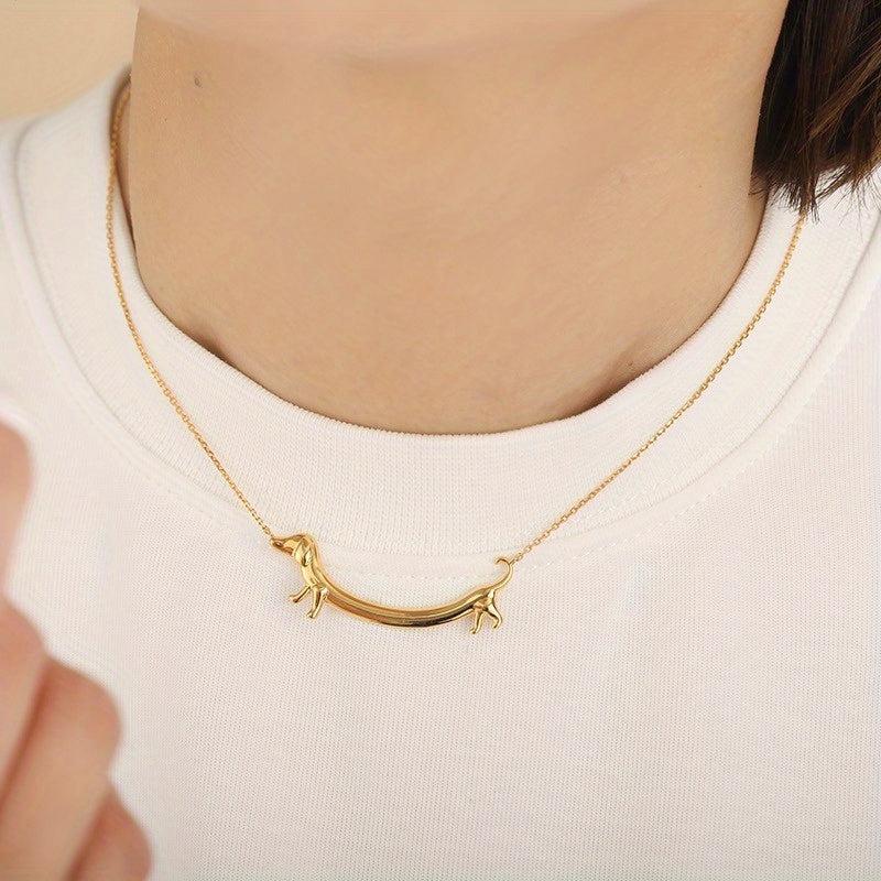 Add a touch of whimsy to your outfit with this unique necklace featuring charming sausage dogs. Inspired by European and American fashion trends, this creative accessory is a must-have for dog lovers.